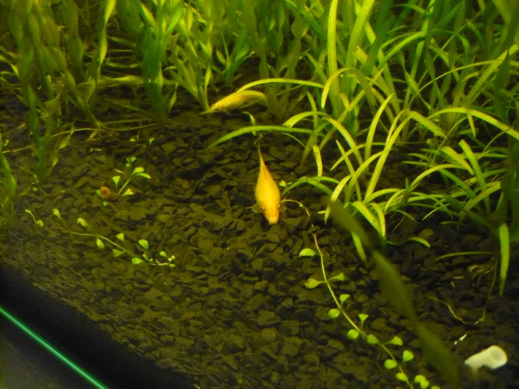 В принципе есть, только аква пустая... Банка... Отсаживать? Я заметил что он у меня кушает много... Когда корм весь на дне, он все собирает...