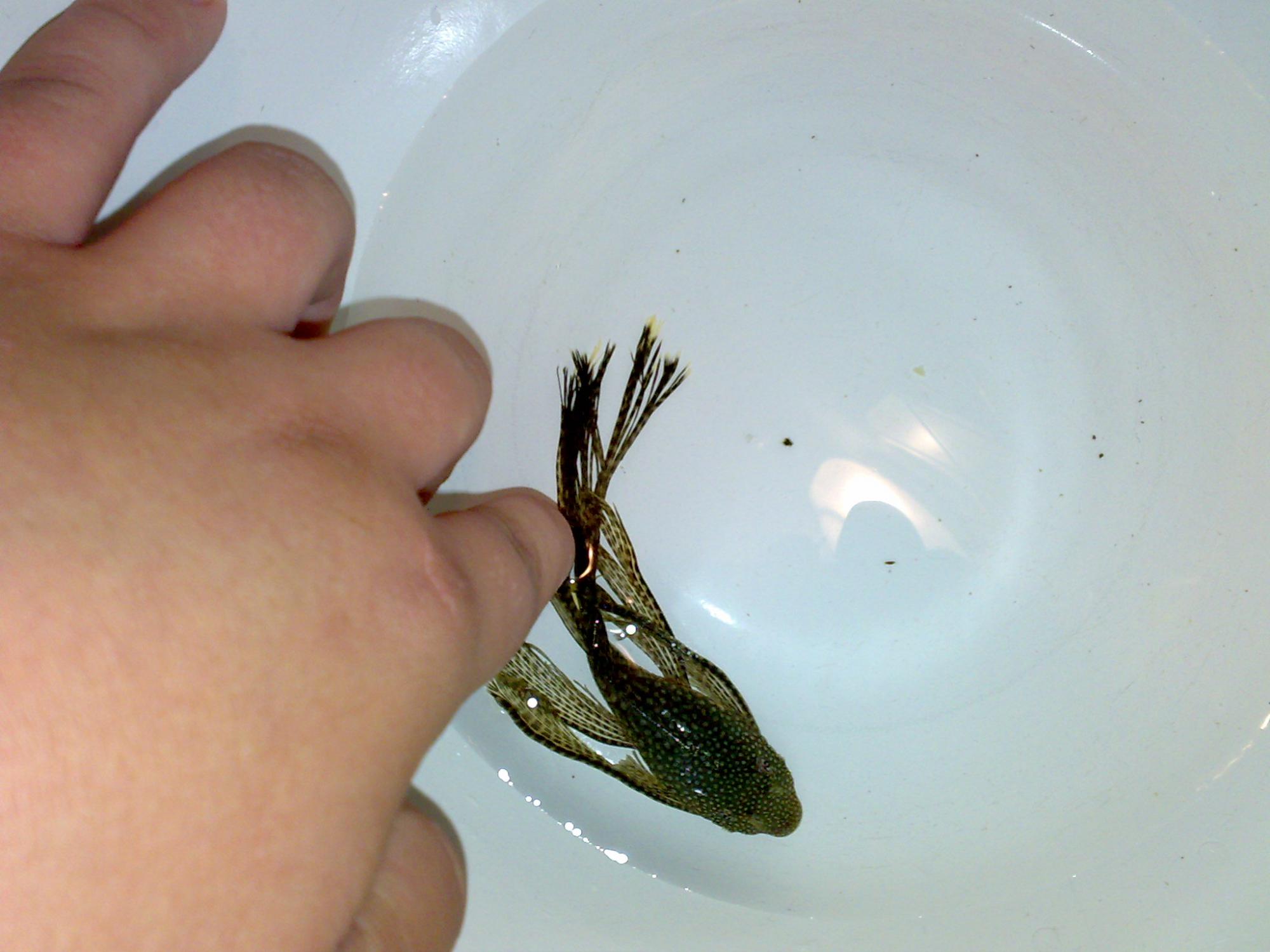 У анциструса (девочки) задний плавник как порезанный???В аквариуме 1 мальчик и 2 девочки.ест нормально. ест днём остатки корма(Tetra Pro Color) от других рыб.