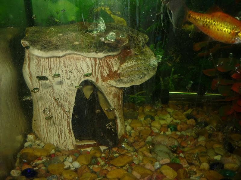 Жалко его, как члена семьи, к аквариуму подойдешь - он из домика выплывает. да и тесновато ему уже в 70+литрах