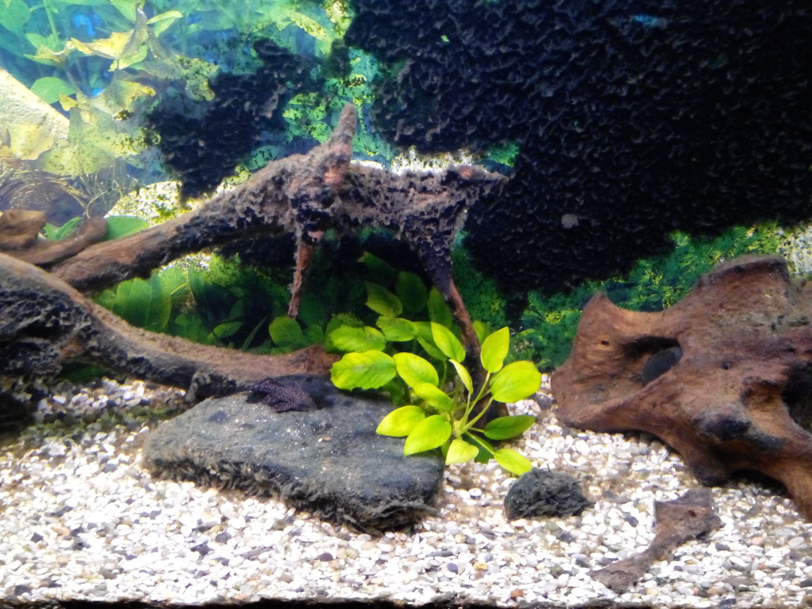 Так вот, после трагической гибели второго сомика, все камни, коряги и особенно задняя стенка стали покрываться