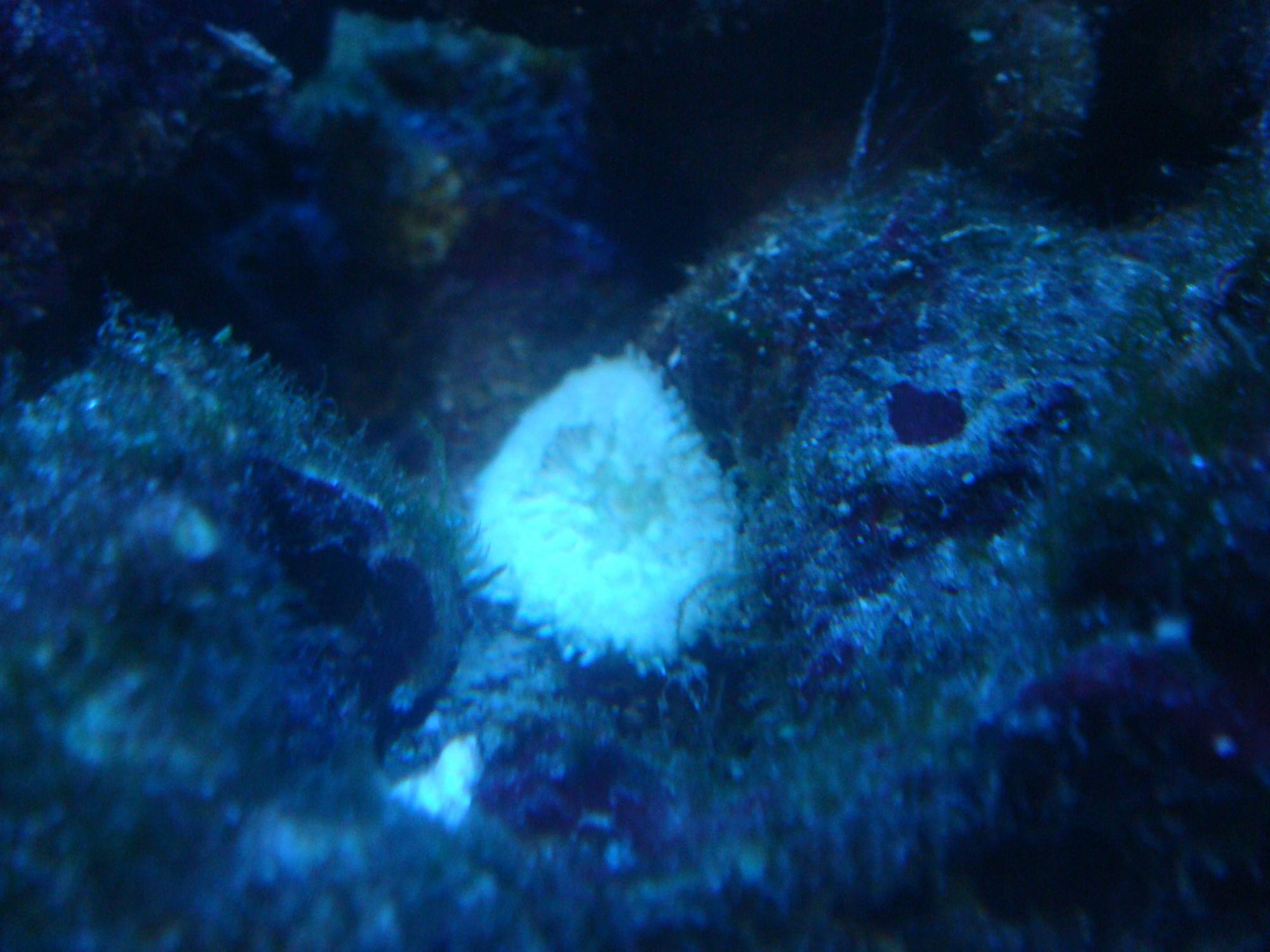 Пришли на марченковских камнях 2 актинии размером с 25 коп. Одна белоснежная с красной ногой, другая грязного бурозелёного цвета. Как только выклал камни сидели на одном месте, через пару часов уже поберебегали в ближайшие расщелины в сантиметрах 5-ти от них. Шустрые. При выключении основного света заползают в щель, только кайма видна. Свет включается, тут же раскрываются через пару минут. Полипы мелкие и их много. Но не шариками, как у пузырька, а острые. Одну ещё как-то можно сфотать, вторую нереально. Какие мысли по этому поводу? Дело в том, что работник сказал в магазе, что в этот раз таких актишек пришло на камнях много, но он не в курсе, что за род, тем более вид. Значит, некоторые из тех моряков, кто у Марченкова брали камни с последней поставки, тоже получили эти создания.