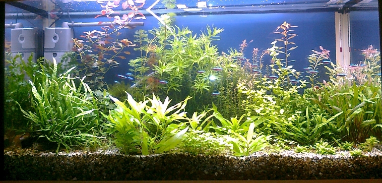 Лампы: 2 Phillips Aquarelle, по 30 W и 2 Sera Planta Color, по 30 W. Фильтр итальянский Ferplast. Баллонн с СО2 на 2 л.