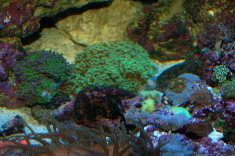 Итак, первый левый был запущен где-то в феврале 2011г. на примерно 30% тропического ЖК и 70% СРК (сейчас соотношение обратное). В качестве грунта крупный арагонитовый песок + Mineral Mud. Поначалу использовался как обиталище для "вредителей" -морские ежи, ципрея и т.п., ну и слегка под рыбу. Где-то к осени прошлого года был переделан под кораллы, почищен с помощью метода водки, освобожден от ежей + подмена 50%. Сейчас подмены по 15 л в неделю. В стаканах фильтра -матрикс, денитрат и уголь. В пеннике мешочек с пуригеном. Освещение - пока светильник Логинова 4 х 24 Вт.
