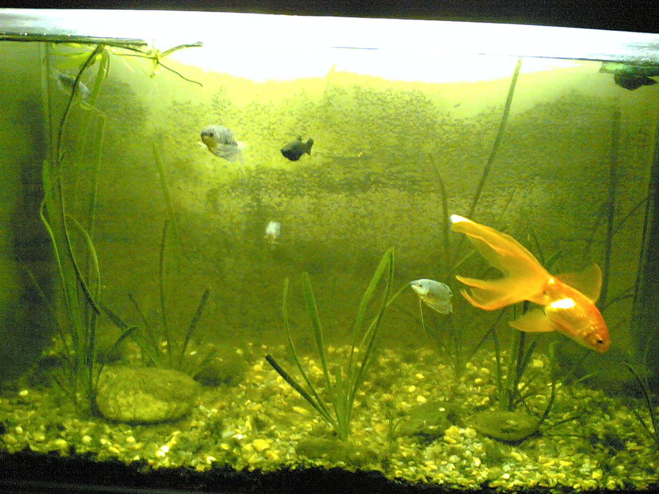 Из фото - не очень удачный состав рыб - золотые и гурами.