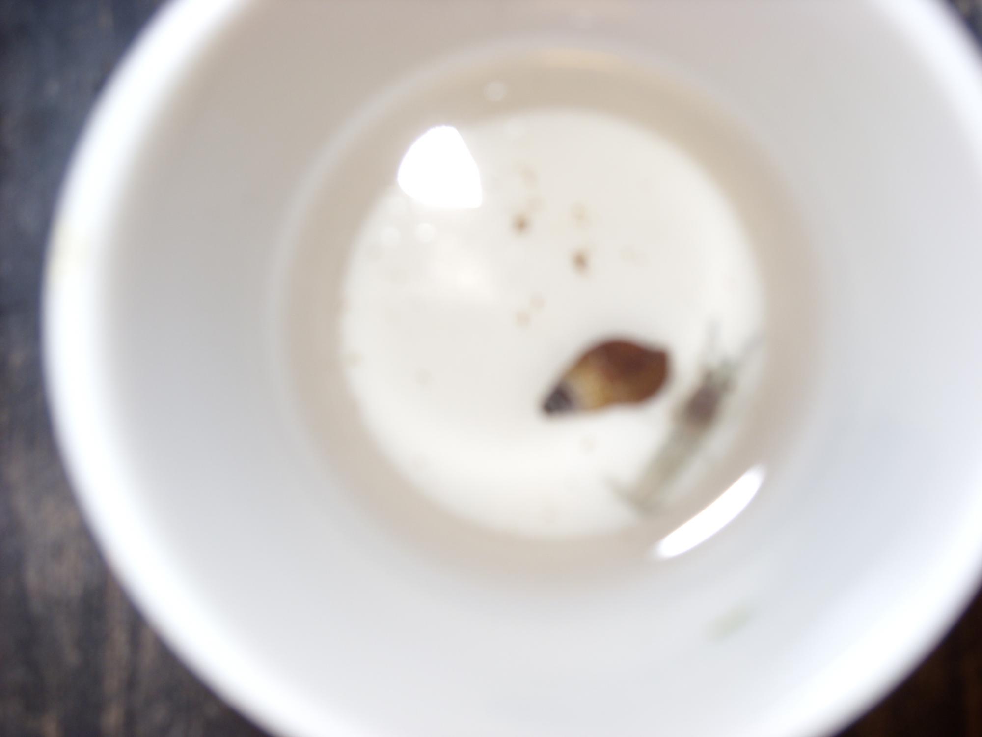 — Bithynia tentaculata — Битиния щупальцевая. Несколько похожа на лужанку представитель близкого семейства Hydrobndae. Небольшая улиточка, высота раковины 10 мм, ширина 6 мм, с конической раковиной, снабженной известковой крышечкой. И лужанка и битиния всегда держатся на дне водоема и не всплывают на поверхность, подобно прудовикам и, катушкам. При опасности они замыкают раковину крышечкой, которая служит этим улиткам превосходным заградительным щитком. Битиния охотно поедает зеленый налет водорослей на подводных предметах. В отличие от лужанки битиния размножается, откладывая яйца на водные растения. Кладка ее имеет очень своеобразную форму и легко отличимая от кладок других моллюсков: она состоит из шестигранных икринок, которые расположены двойным рядом и облечены студенистым веществом, образуя продолговатый слизистый шнур. Битиния принадлежат к жаберным улиткам, которые извлекают кислород из воды при помощи жаберного аппарата, скрытого под раковиной. Благодаря водному дыханию Битинии очень чувствительны к качеству воды и при неблагоприятных условиях погибают гораздо скорее, чем прудовики и катушки.