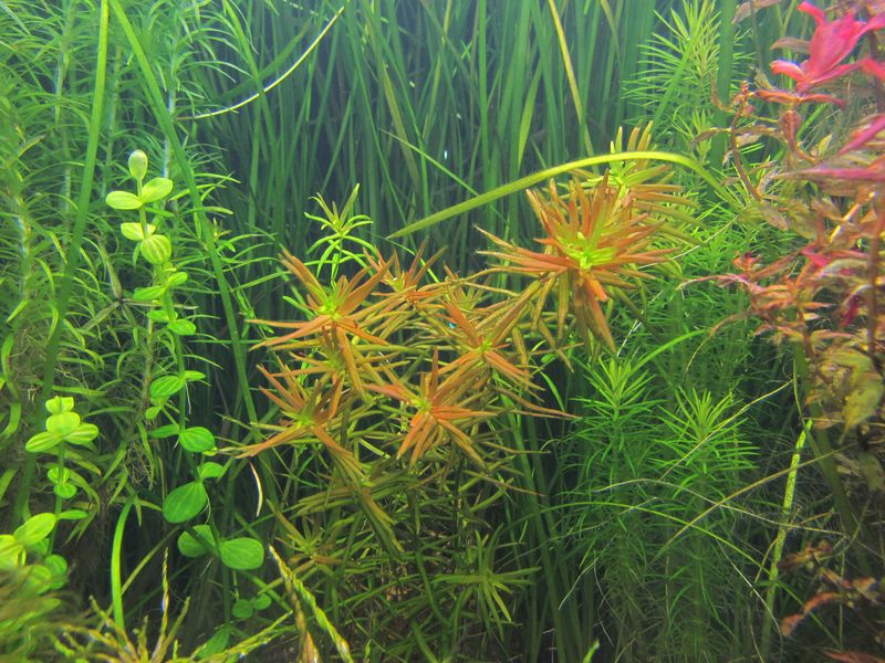 Так же по причине скачка напряжения прекратилась подача СО2 и остановился внешний фильтр. Аквариум находился в офисе и увидел только в понедельник во второй половине дня. Свет жарил более 1Вт/л поэтому улетел в сильную водорослевую вспышку, все растения покрылись мелкими волосками и начали деградировать. Реально я такого не видел никогда, до этого шикарный аквариум и красивые здоровые растения превратились в что-то страшное. Верхушки дидиплиса поотмирали и посерели половина куста развалилась на отдельные фрагменты, ротала валиха из красивых пышных ёлок превратилась в жалкое подобие полностью облепленное мелкими зелёными водорослями. Большой куст роталы тигр полностью скрючился, нижние листки побелели и покрылись рваными «ранами», верхушки рахитировали, рост прекратился. Пострадали также лидвигия куба и торнадо, валлиснерия нана, лимнофила ароматика, эхинодорус нежный рубра, ситняг.