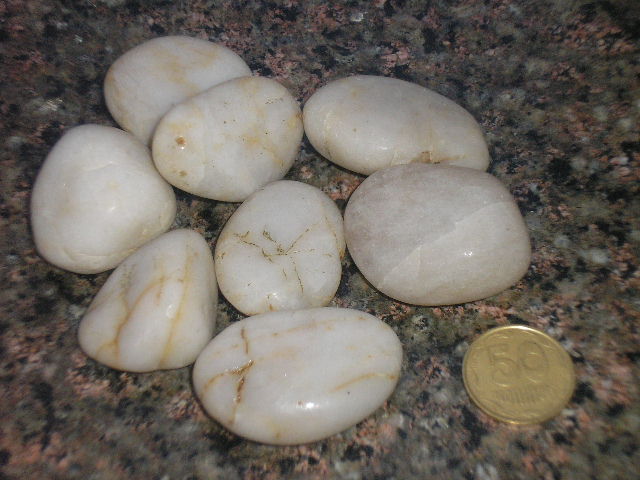 Продам камни факция 3-4см.Белоснежные гладкие. Все оптом 100грн.Или в розницу.Очень красиво смотрятся в аквариуме.Отправлю по Украине.0978986099 Или обмен на корм для дискусов сухой или заморозка.Примерно ведро на литров 8. Покупал посфасованные и запечатанные в пакетиках по 15-20 штук.Обошлись в зоомагазине все 300 грн.