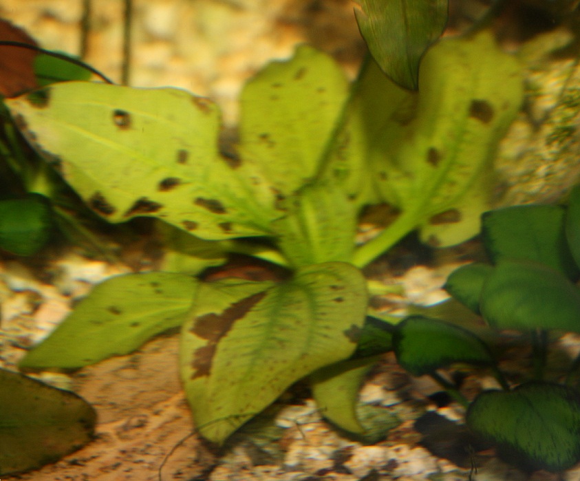 Вкусненькие эхинодорусы... У меня анциструсы иногда такие пакости делают. Ещё лимнобиум прогрызают, другую траву не трогают.