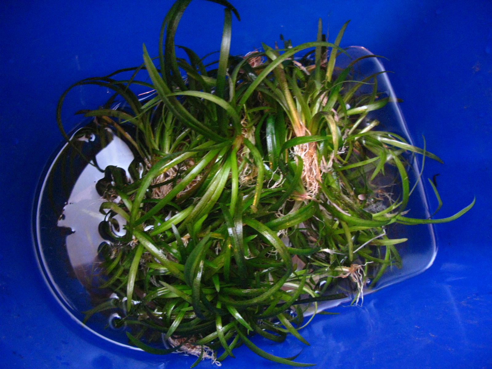также есть штуки четыре отростка некой лилии, то ли какойто формы нимфеоидеса - листья идут строго на поверхность, потом цвектет красивыми желотоватыми цветами, как лилия