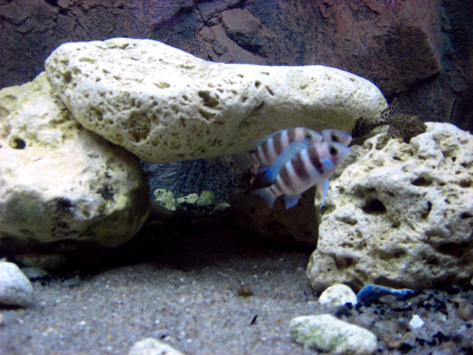 После часового отстоя в ведре, запустил в банку малышня по тройкам разбежалась по угламю так простояли минут 30, затем самый большой в сопровождении двоих поменьше пошел на разведку, нашел вторую тройку покружил вокруг, и те безропотно присоеденились и уже вместе закружили по банке. Самый большой наверно и будет доминантом