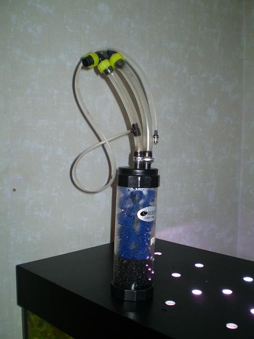 Вот, что удалось сделать. Расстворимость СО2 вроде полная-сужу по тому, что на выходе только вода, никаких пузырьков. Проверял с помпой, теперь установлю на выход фильтра. Може, кому еще пригодится фото...