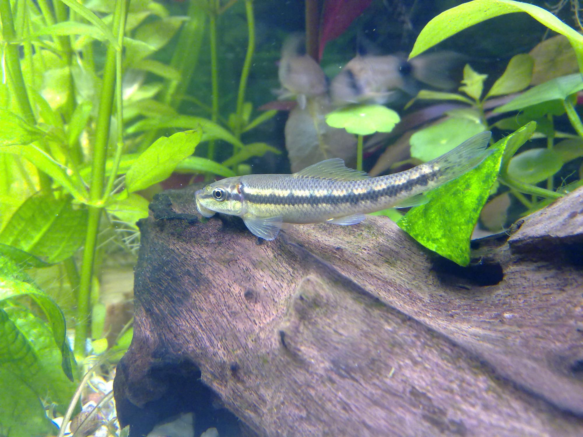 у Тайландского (подлинного ) нет присоски, но есть две пары усиков, темная линия посредине тела ровная, без зубцов, заканчивается на хвосте