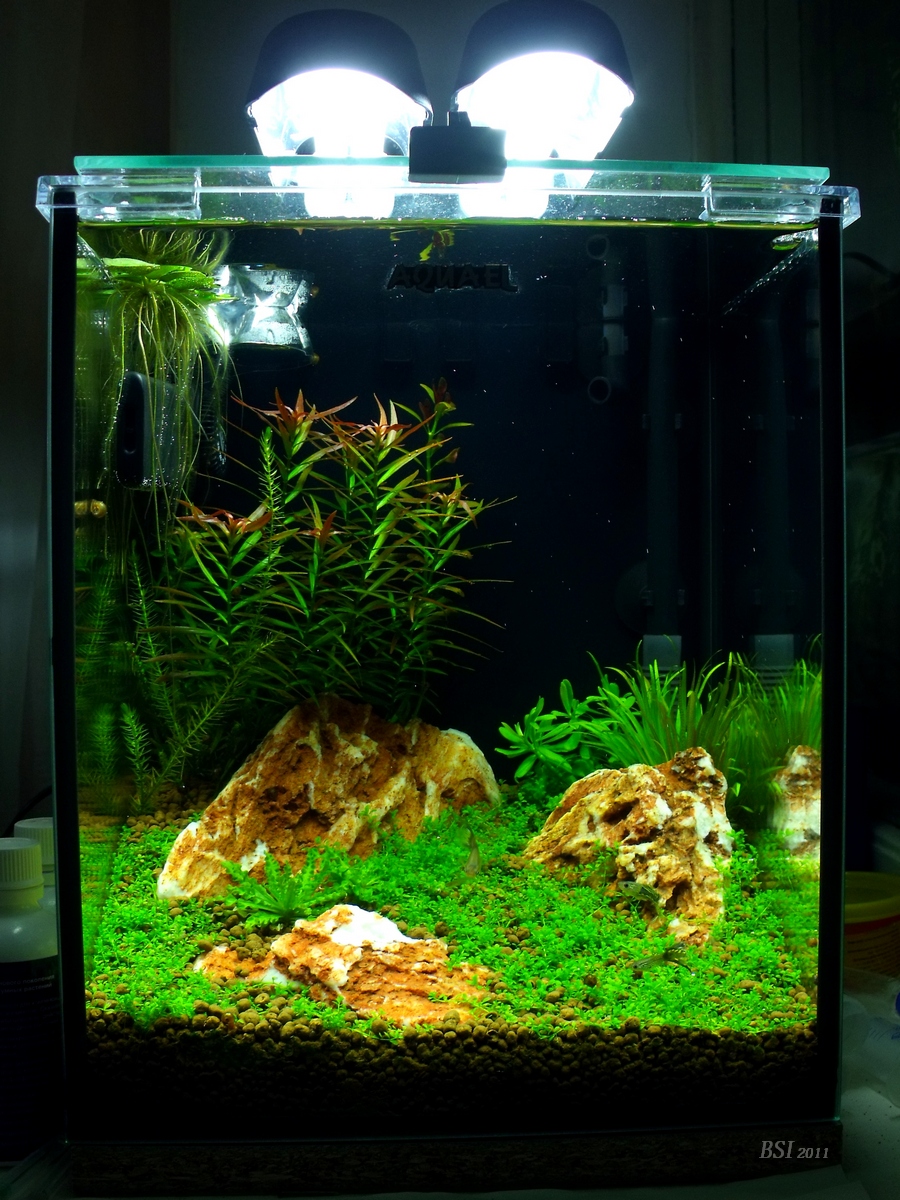 Установка камней, зачастую, - это самый трудоемкий процесс, потому как найти свою композицию можно за пять минут, а можно провозится пару часов (и это в формате НАНО, за большие аквариумы вообще молчу)