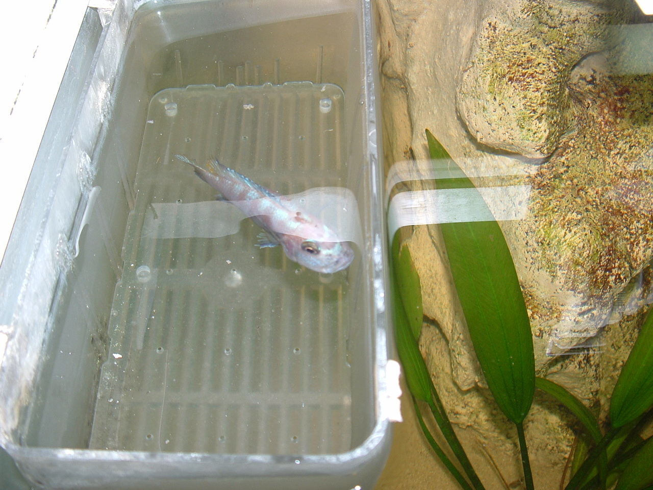 И малька анцитруса нашёл. Не знаю солько их было, но одного удалось спасти. Да и ещё одна малави с зобом плавает, но мне уже моих 25 оглоедов хватает, та пускай сама попробует свой приплод спасти.
