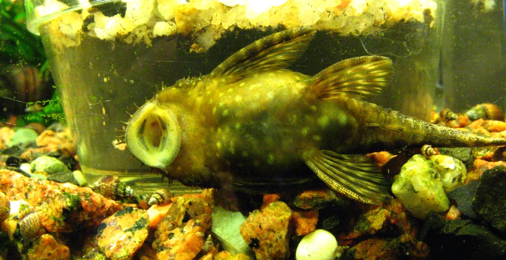 анцик в возрасте год-полтора. размер около 5-6 см (маловат как для 300л и хорошей кормежки(((