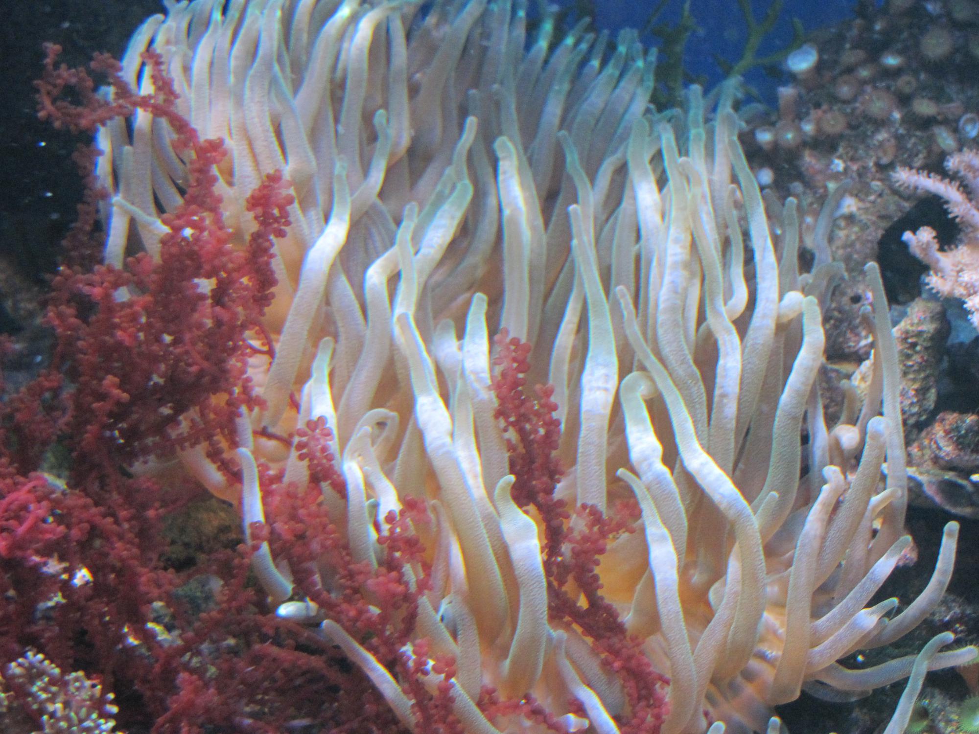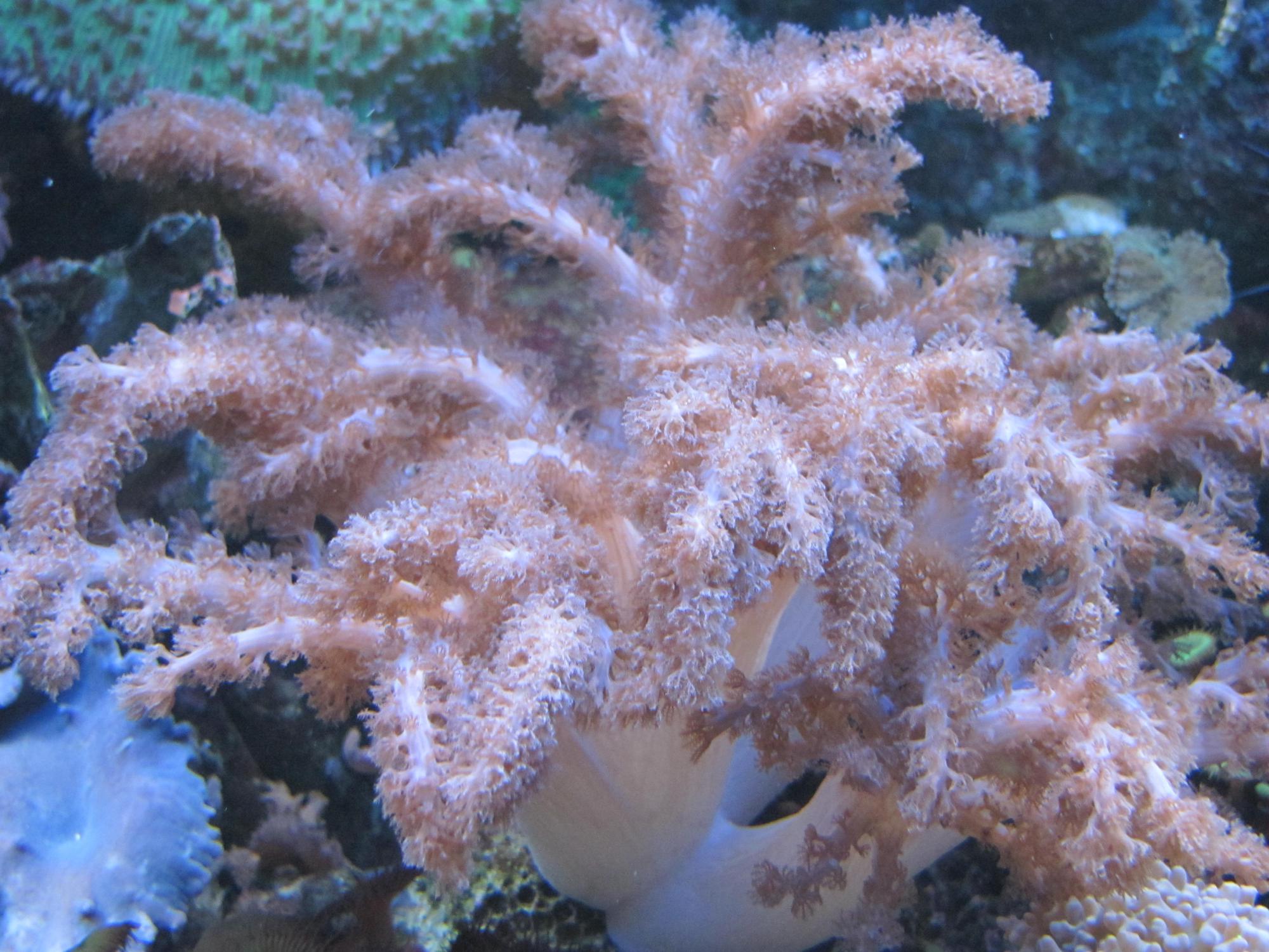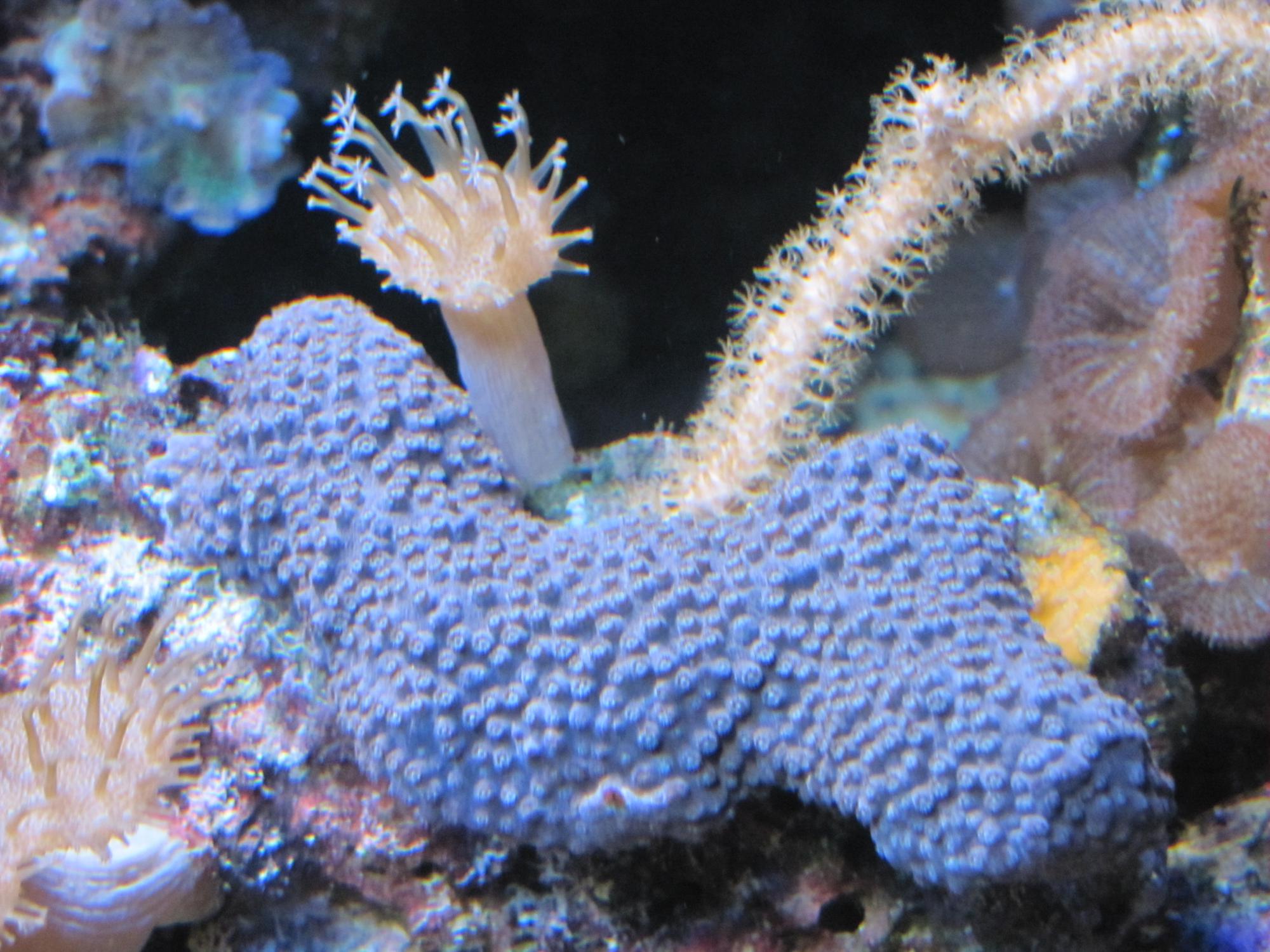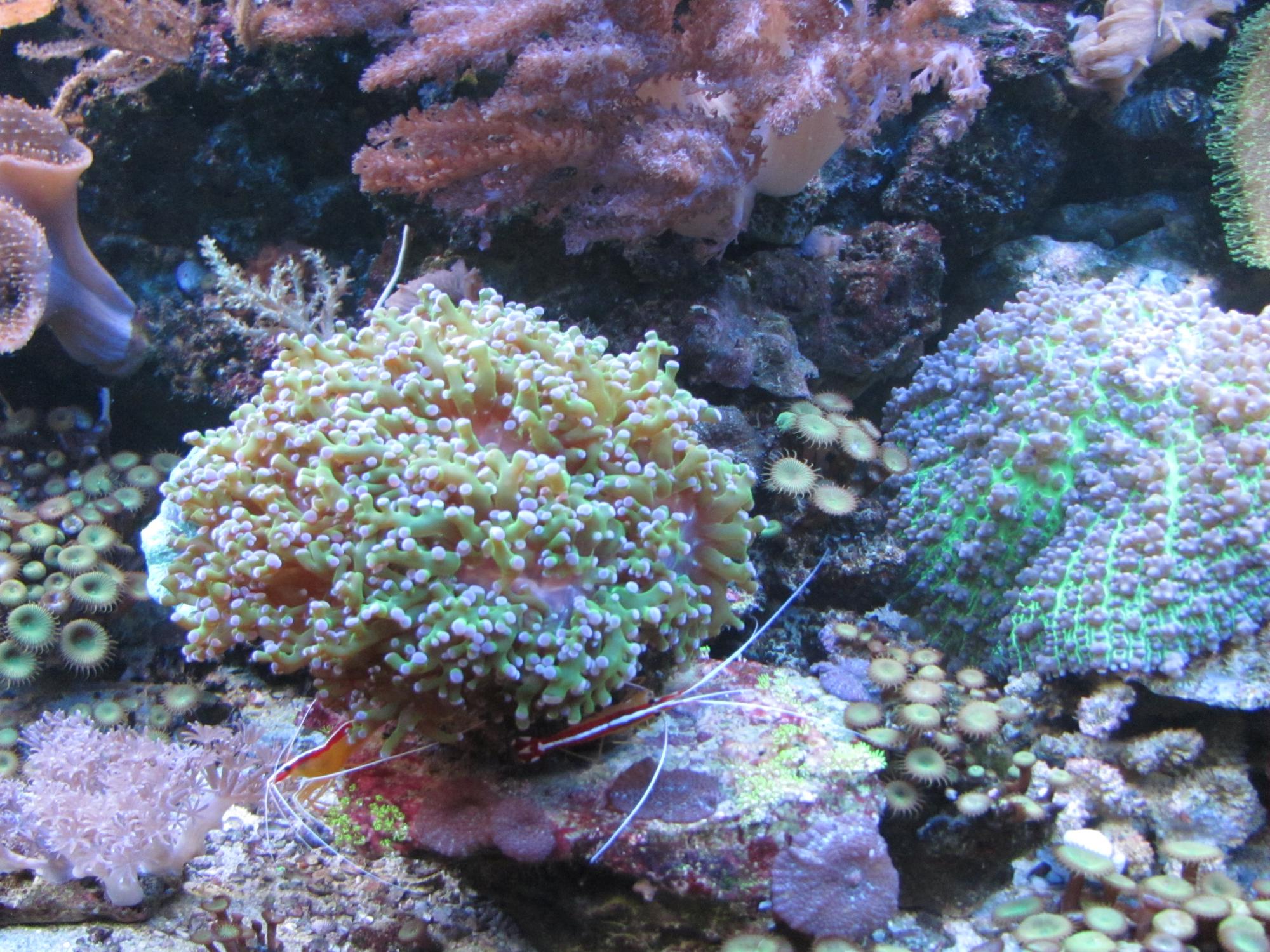 В аквариуме живут как мягкие так и твердые кораллы,из них 2 вида СПС.
