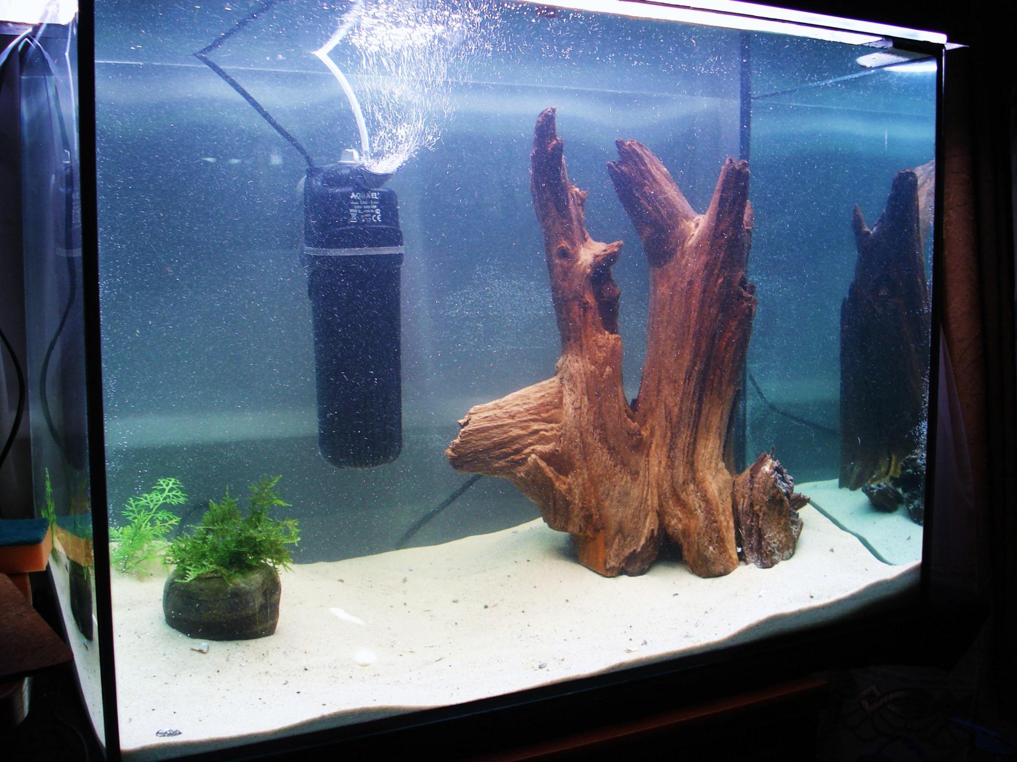в подарок к аквариуму получил корягу, довольно большую!