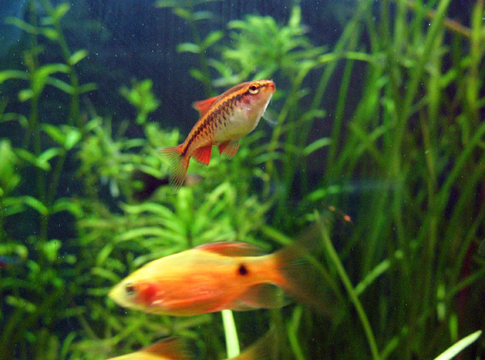 Неделю уже как у самочки барбусика вздутый животик, может она беременая? Или обьелась? Наблюдается как до так и после кормления