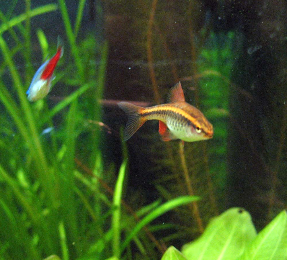 Хорошо если самка беременная. Нехочу пугать, но у моих вишневых было следующее: где то раз в месяц одна из рыбок надувалась как шарик и через несколько дней уходила в мир иной, так в течении года все вишневые умерли. Название болезни не знаю, поражала только вишневых. Так что присмотритесь и воврямя приймите меры, не дай бог конечно.