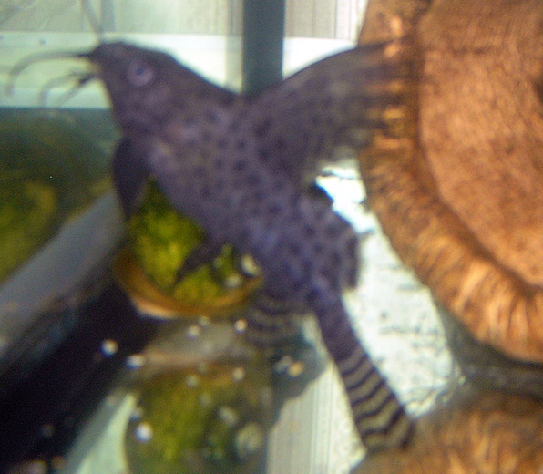 У меня такойже был.....звали собакой....потому что когда гладили по стеклу в раене животика, плавничком дергал как собака лапкой....(((((( Погиб от передозировки лекарств ;(