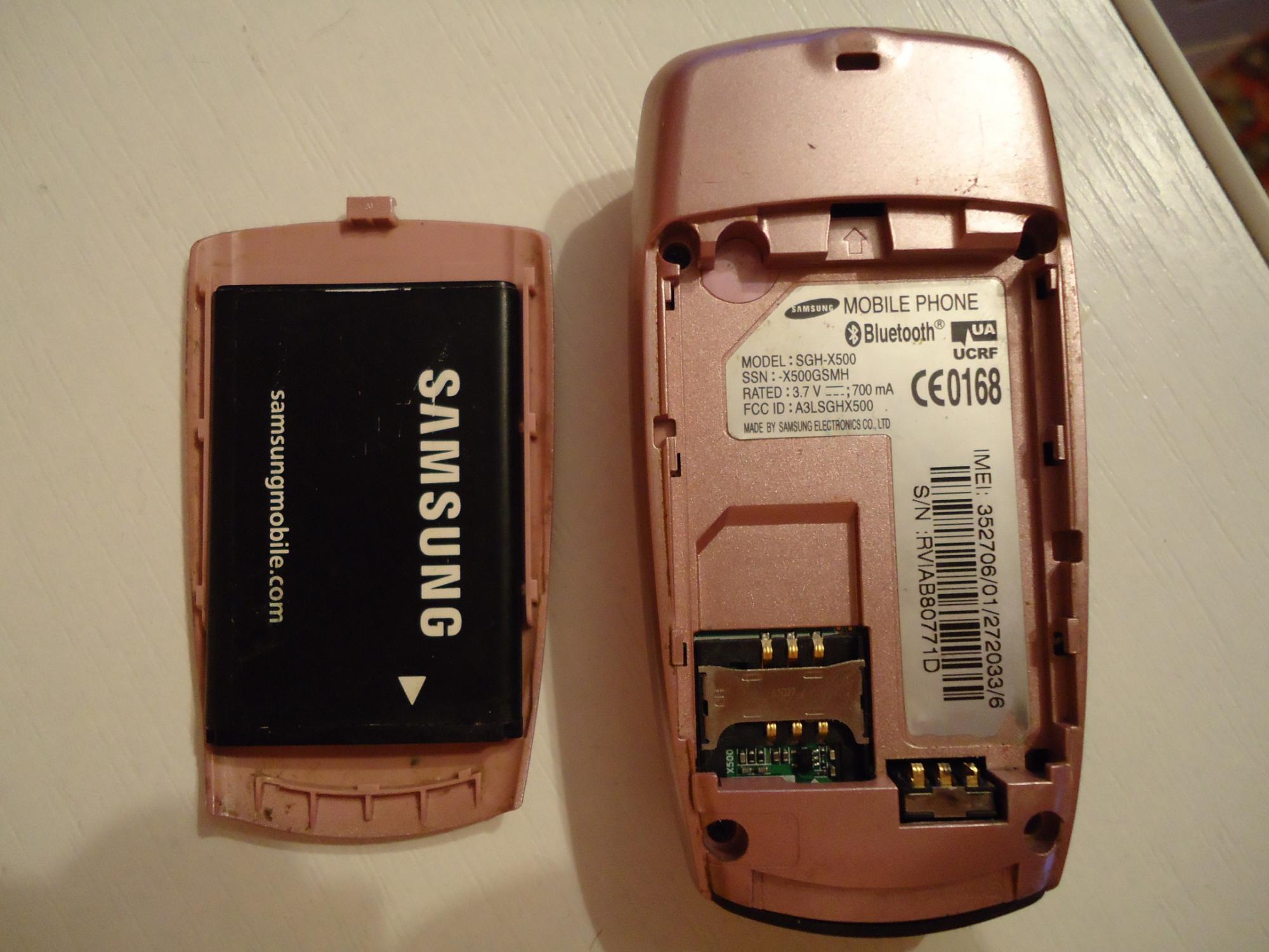 Samsung X500 Телефон полностью рабочий в отличном состоянии ни разу не подводил.Верхняя крышка не расшатанная.Батарейка держит 3-4 суток.В телефоне есть GPRS,Bluetooth,MMS,MP3-плеер,Диктофон,Java,цветной экран в комплекте телефон, АКБ, зарядка оригинальная (не китай)