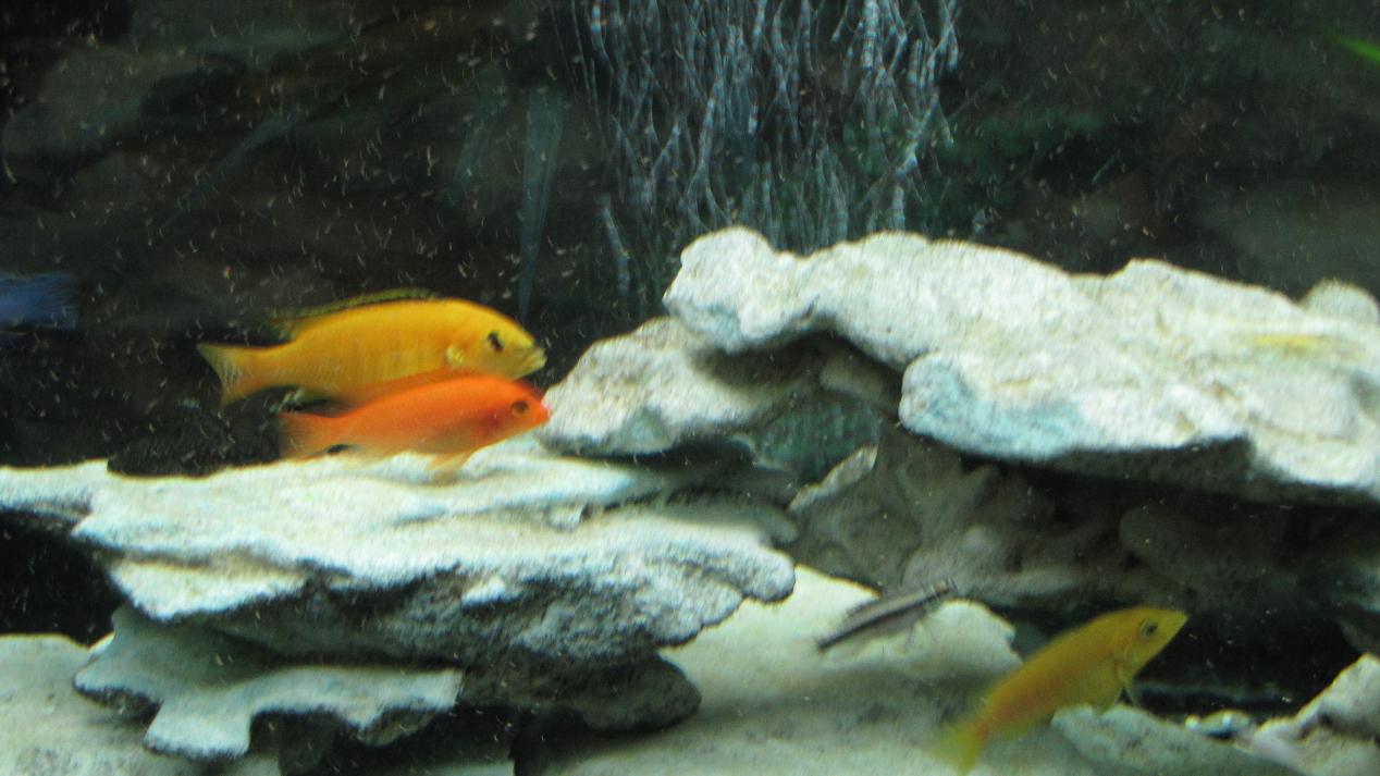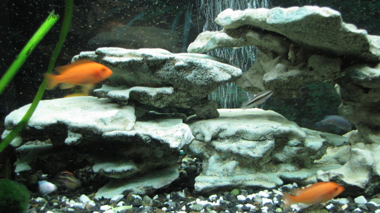 Камней еще нужно добавить, как минимум в 2 раза больше. И "попугайчика" (Pelvicachromis pulcher), видно на фотке, лучше убрать от малавийцев, заганяют.