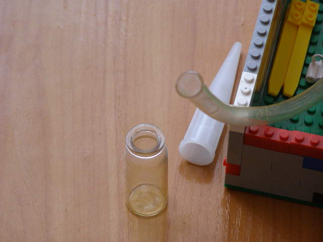 Прокумекав принялся модернизировать.ПВХ трубка 8мм колба емкость от сухих антибиотиков для уколов,носик от герметика +аква силикон .