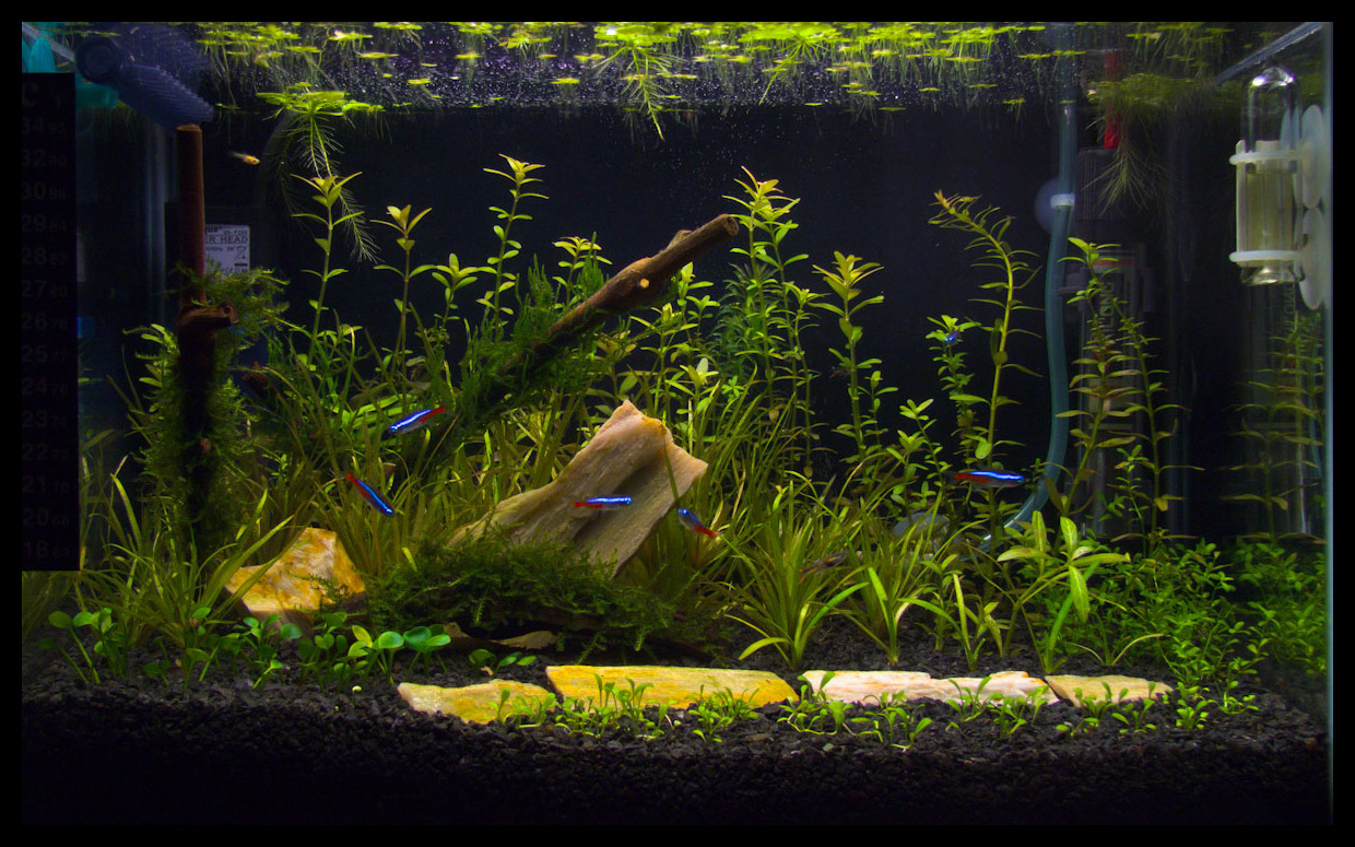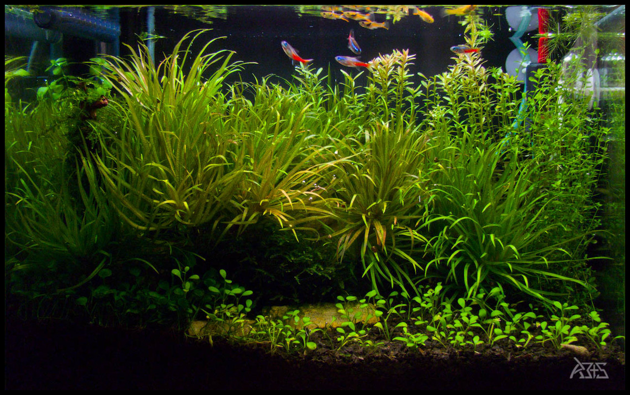 Замінив фон. Перейшов на ремінералізовану воду kH 0, gH 6-8. Подача СО2. Подача УДО Єрмолаєва (макро + мікро) 0,5 мінімальної дози.