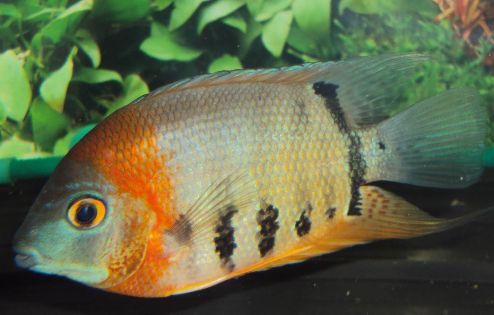 2. Цихлазома Северум красноплечий (роткайл), возраст около 1.5 года. предположительно тоже пара, но нереста ещё небыло.