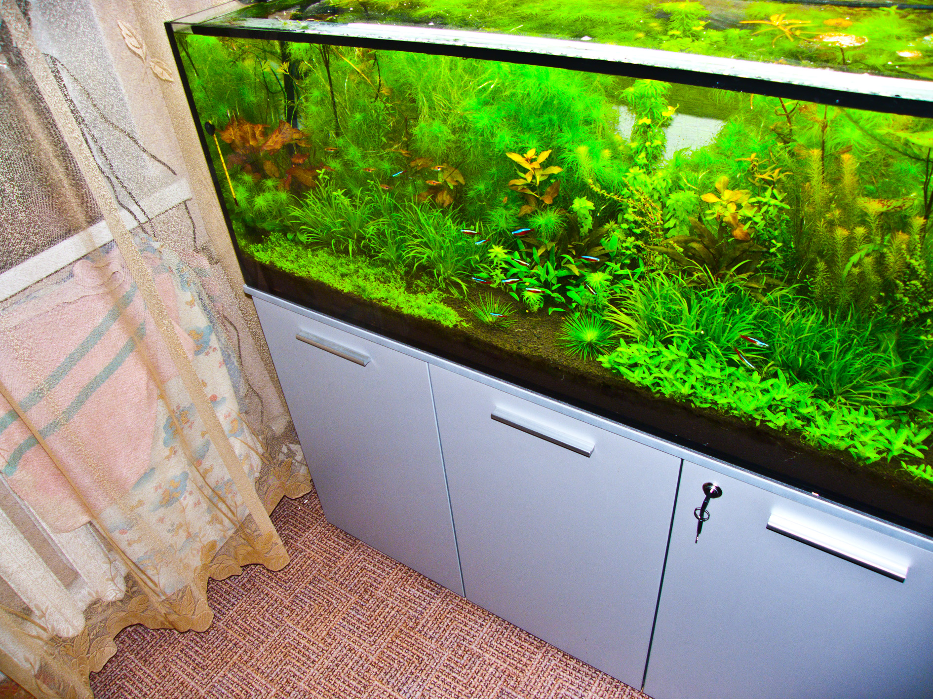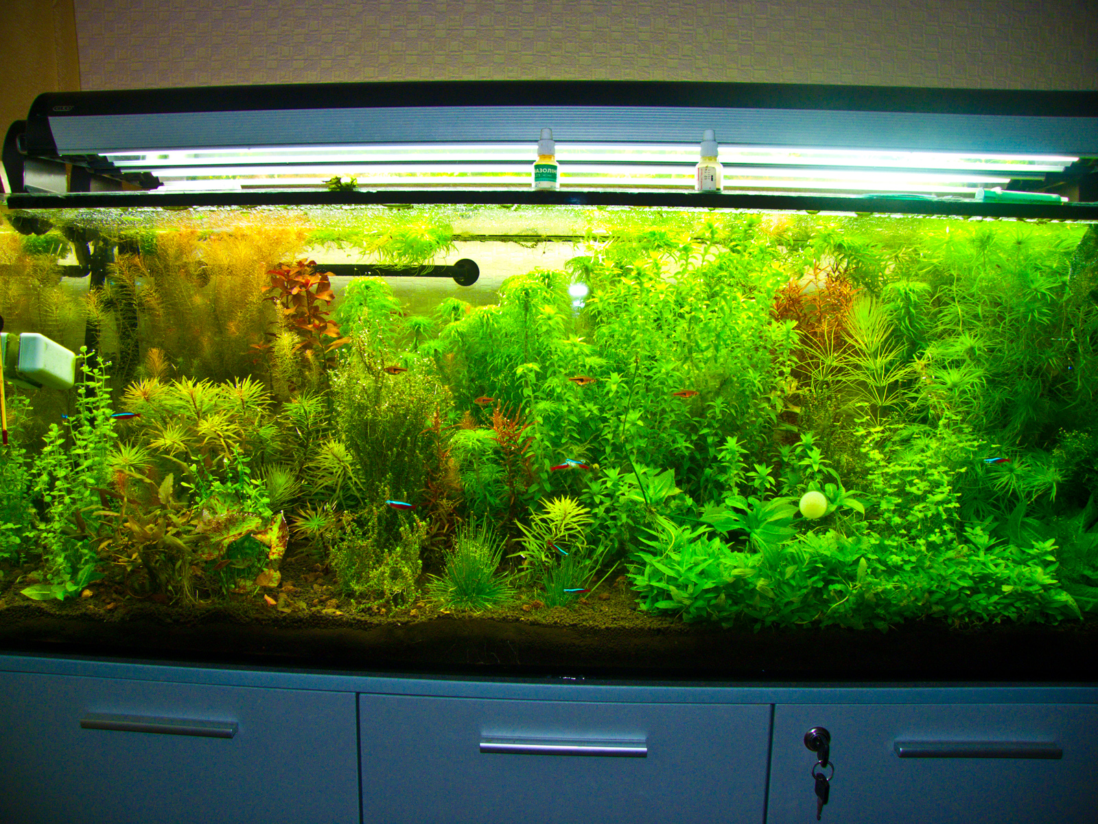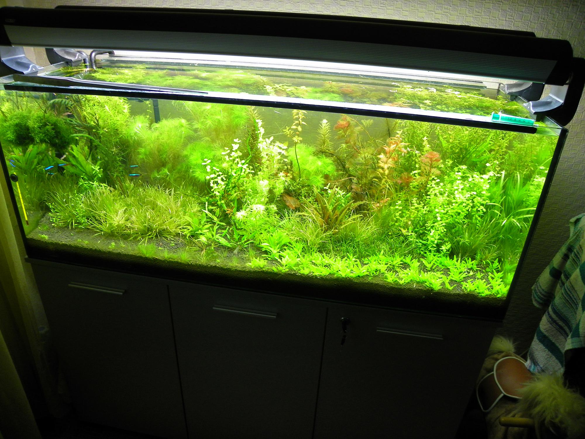 Итак: грунт NEW AMAZONIA 3 пакета по 9литров, внизу- вулканит 10кг., бактер 100, актив. Уголь, сиечем пуриген., фильтр из старого аквариума джбл 900 (боюсь что будет маловато)освещение хагены 2 светильника 2*54Вт и сама банка 120*45*45.ода рем. осмос, темп. пытаюсь сбивать до 25-26град.