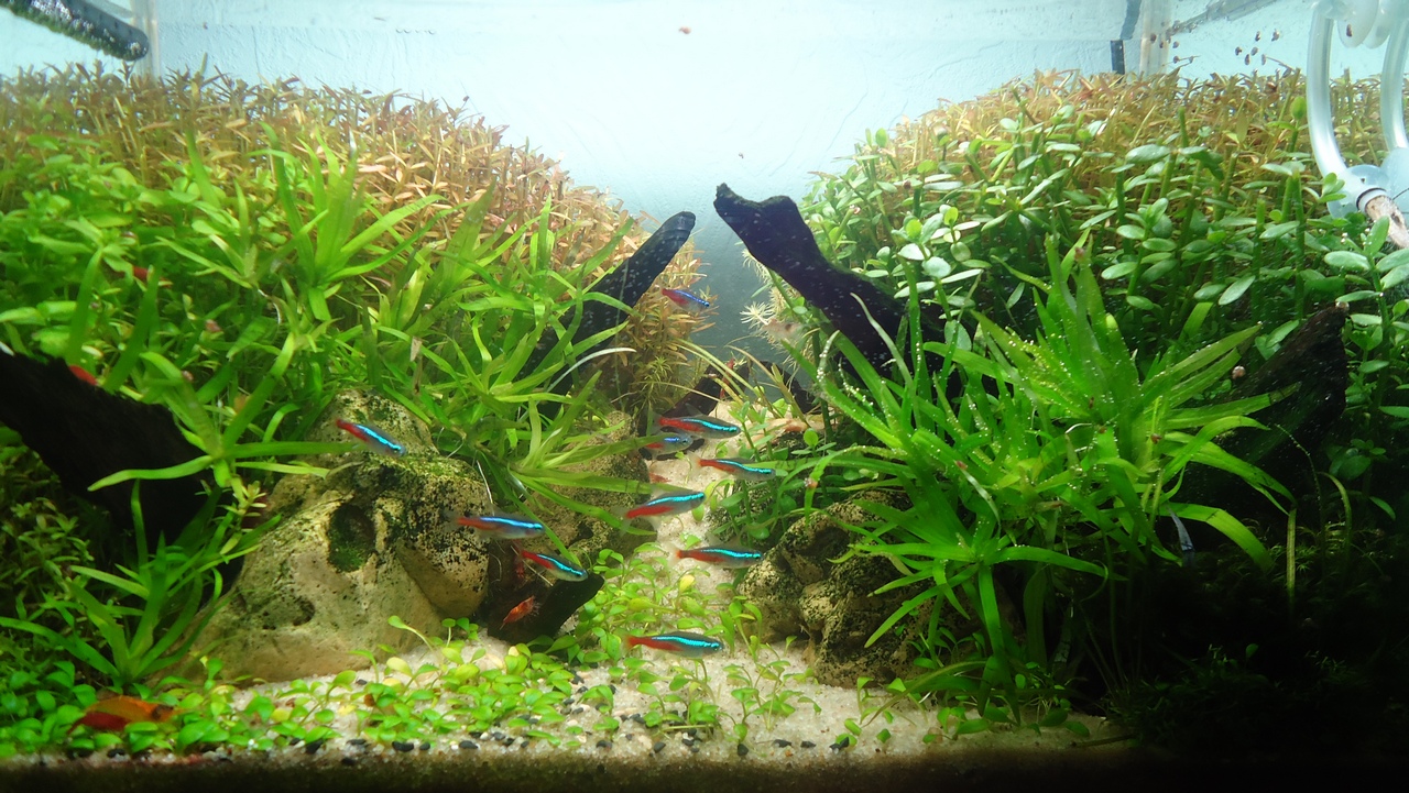 Рыба и беспозваночные: Paracheirodon innesi, Ancistrus dolichopterus gold, Neocaridina heteropoda var. red, Caridina cf.propinqua.