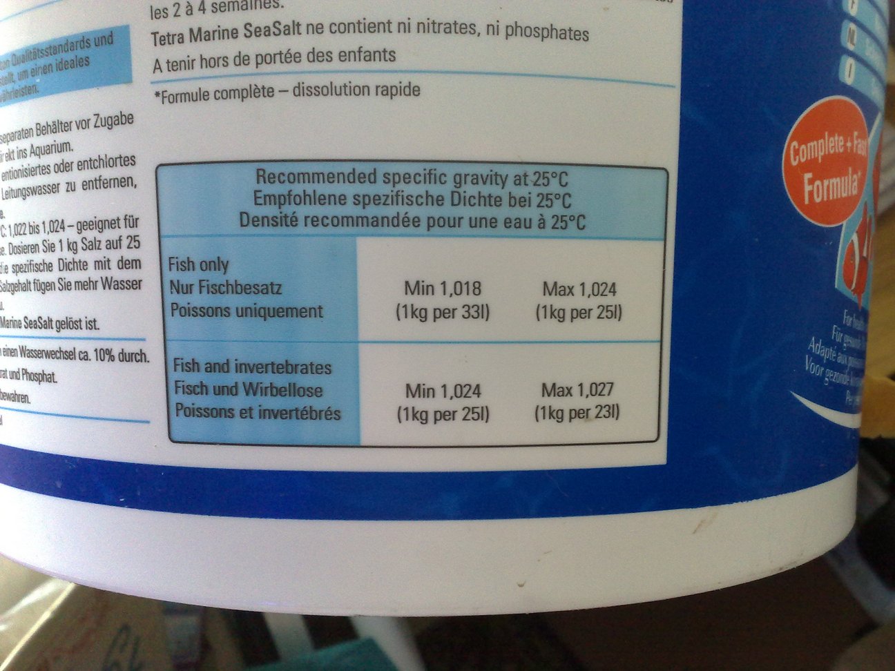 vitruviy, не обращайте внимания на цвет шкалы-эта шкала зеленая только для рыбы, так как тетра рекомендует содержать рыбную банку при меньшей солености чем банки с коралами и рыбой, вот что написано на ведре с солью тетра