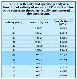 Дальше больше reefkeeping здесь рекомендует Salinity 35 ppt sg = 1.026 что абсолютно соответствует показаниям в таблице 4.