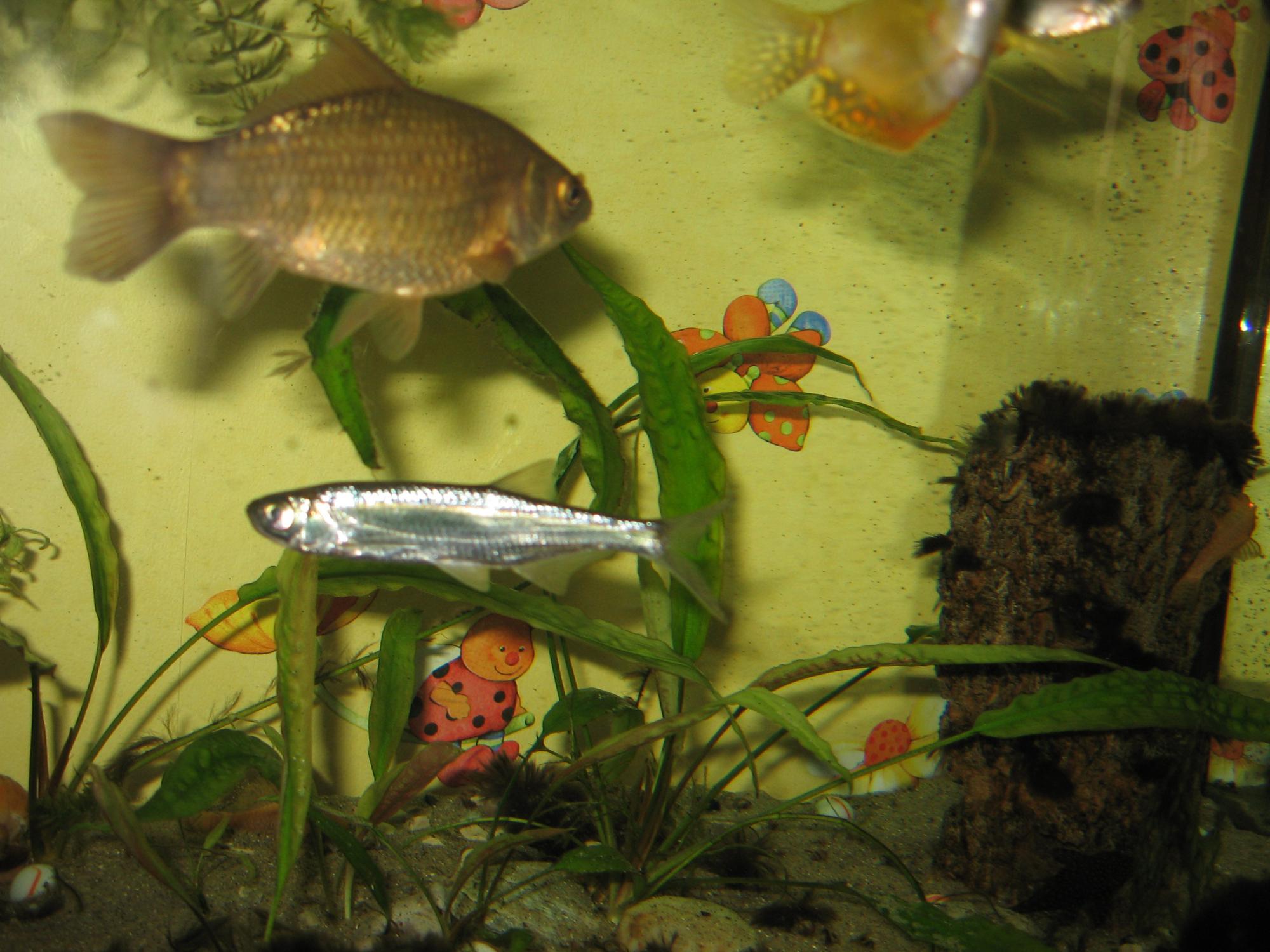 Хм, брала коту мелкую рыбку, принесла домой - есть живая. Бросила в карантинник, добавила синьки. Так из 8 выжила 1, плавает сейчас в 20 литрах. Самые крупные быстрее всех сдохли, потом отошли те, у кого какие повреждения были, 2 похоже отравились (чем интересно?). Может позже эту одиночку в общий заброшу, или карантинник получше обставлю и еще 2-3 верховодки найду. Рыба интересная.