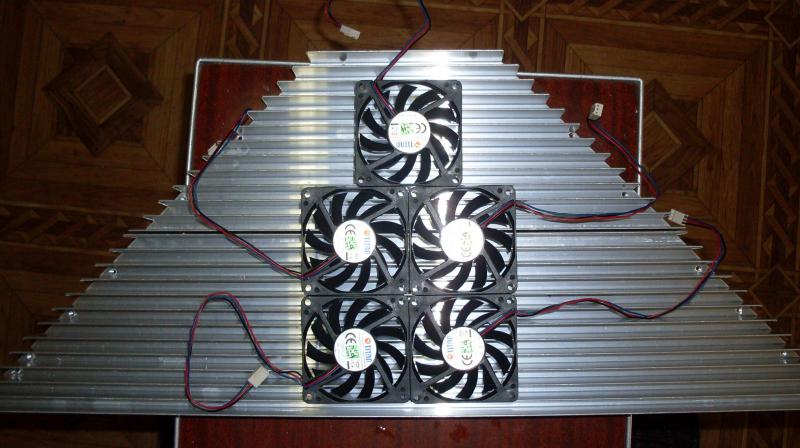 може більші вентилятори взяти? см по 12... шуму значно менше буде при тій самій ефективності що і у 7см вертушок, та й площу більшу обдуватимуть..