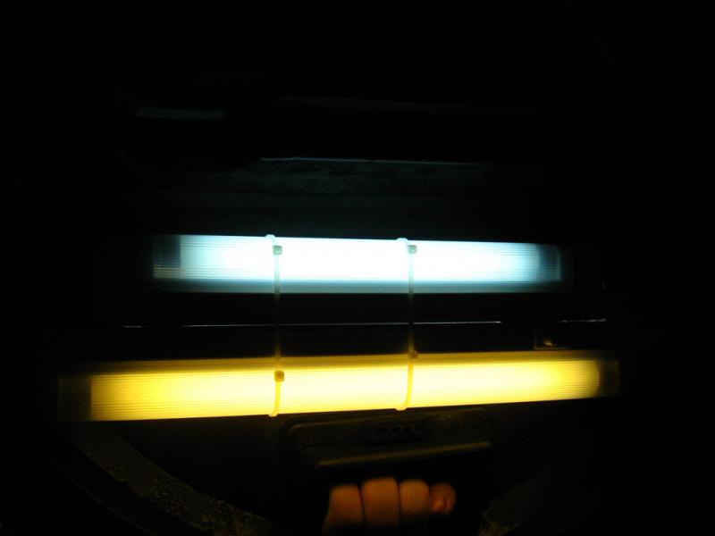 Сначала разместил новую лампу ближе к "лобовому" стеклу а старую желтуху у заднего: