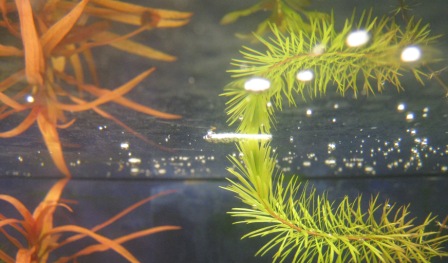 Кислородный режим здесь "выше крыши" и пузырьки сохраняются даже утром, ибо некуда расстворяться. И эти пузырьки кислорода присутствуют уже 5 месяцев непрерывно. какое еще насыщение кислородом нужно? Ну а симпотную пленку можно посмотреть - красотуля  . Мне она в ЭТОЙ акве не мешает.