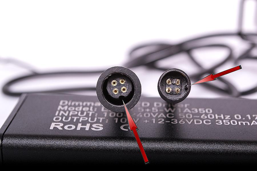 Для чего все эти сложности? А вот как раз на фото ниже видно для чего. В одной вилке, присутствует 4 металлических, токопроводящих , тонюсеньких штырька. А второй штекер имеет 4 тонюсеньких отверстия, под эти самые штырьки. И как я понимаю, все эти стрелочки и пазы, нужны для того чтобы соблюсти "плюсы" , "минусы" питания и т.д. По фото вы можете увидеть что оба штекера сделаны довольно качественно. Ни каких претензий к литью или токопроводящим частям быть не может.