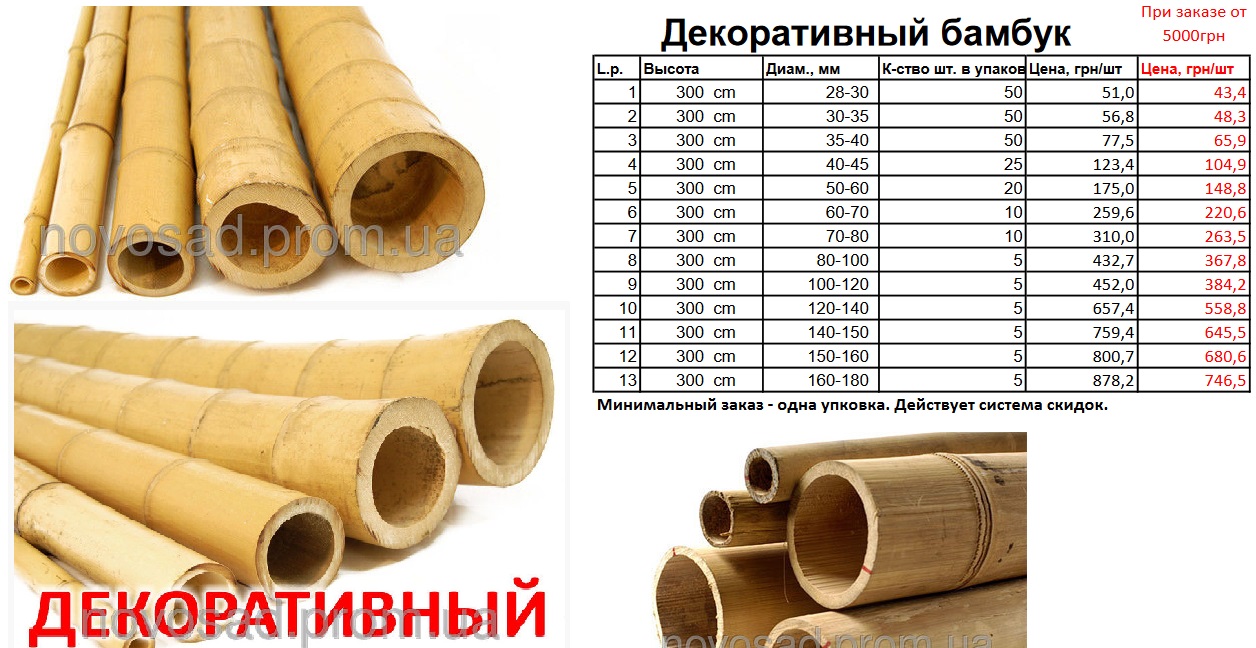 2. У поставщика, оказалось, есть более толстые чем 35мм стволы, они идут под названием "Декоративный бамбук", и диаметры у него от 35мм до 180мм. Кто хочет, можно подкорректировать заказ, или оставить его прежним.