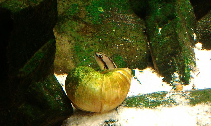 Нересты были у каждой из 4 самок,правда малька забирал всего один раз,сейчас они в размере 1.5-2см.Интересно что самки сидят всегда мордочкой к выходу из ракушки не считая первых дней когда ещё икра а не малёк.