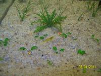 В содержании неприхотливы, обычная киевская вода, едят все - трубочник(подъедают за мальком), специальные креветочные корма,