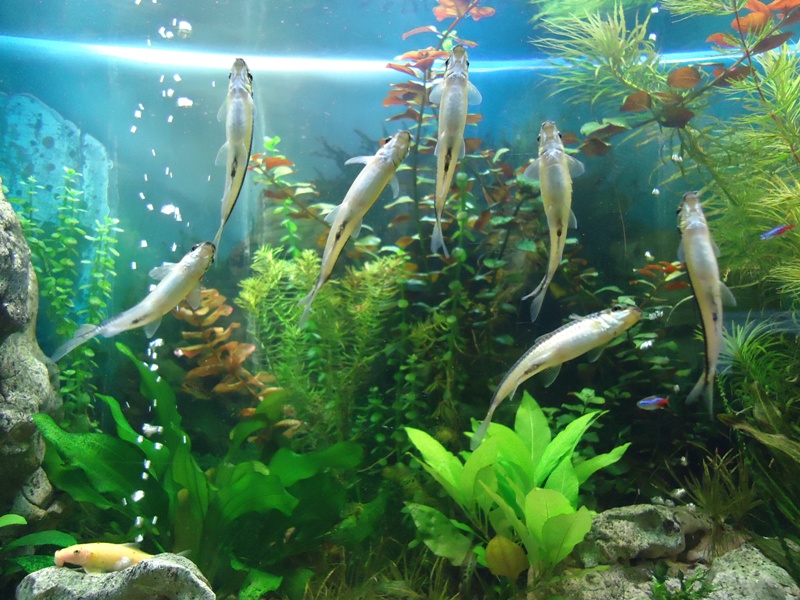 Что вместе совместили камни, растения и этих рыбок.Так как бы не делают.Необычно