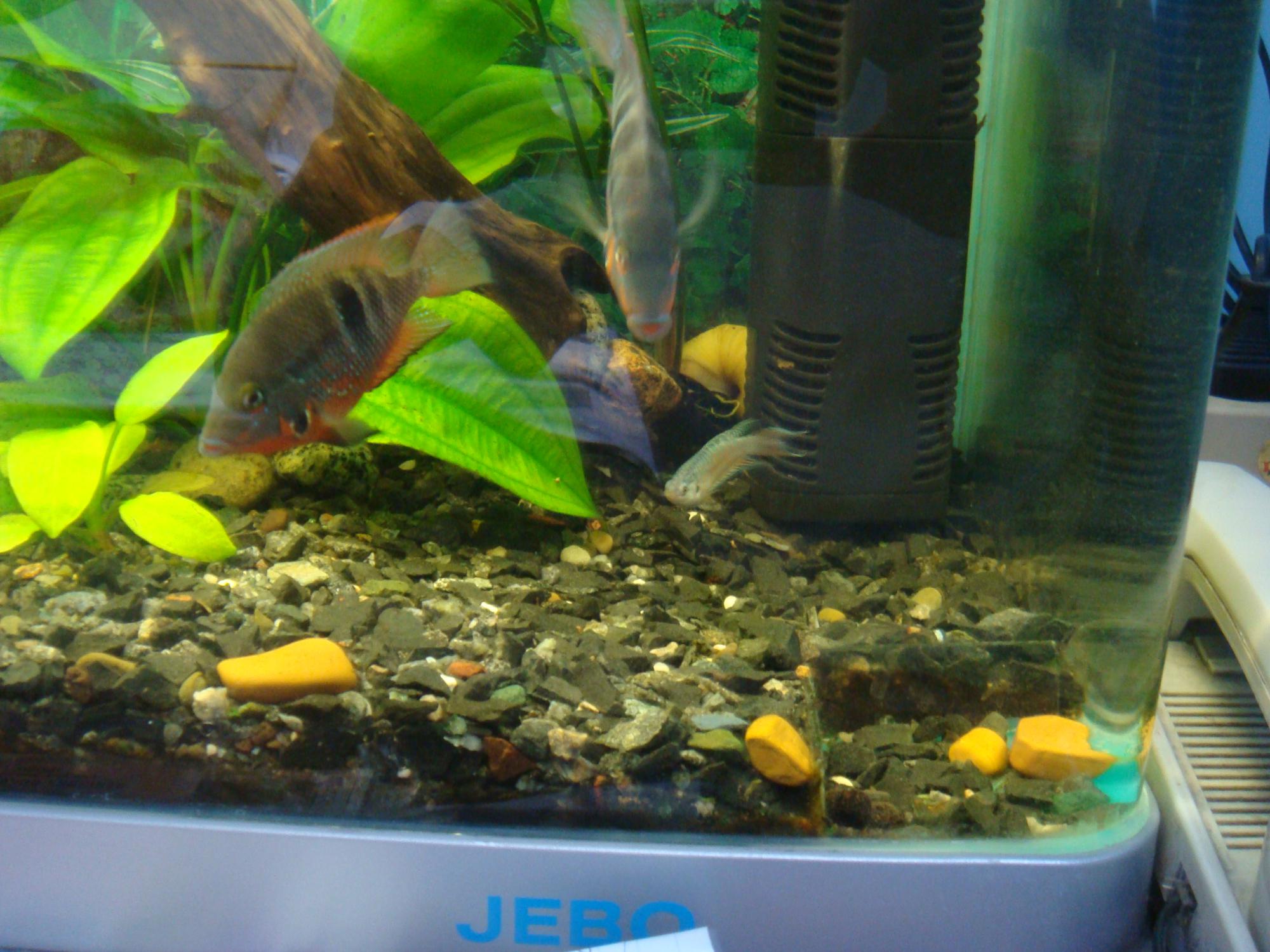 Вот только что сфотографировал свежие фотки, ато те фотки ещё месяцев 4-5 назад были сделаны! Самца мееку хромис немного щас побил (хвост, плавники), так что извеняйте, а так то у него крсивые длиные плавники!