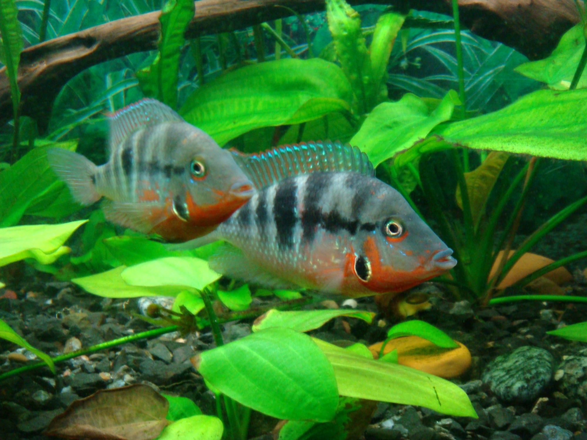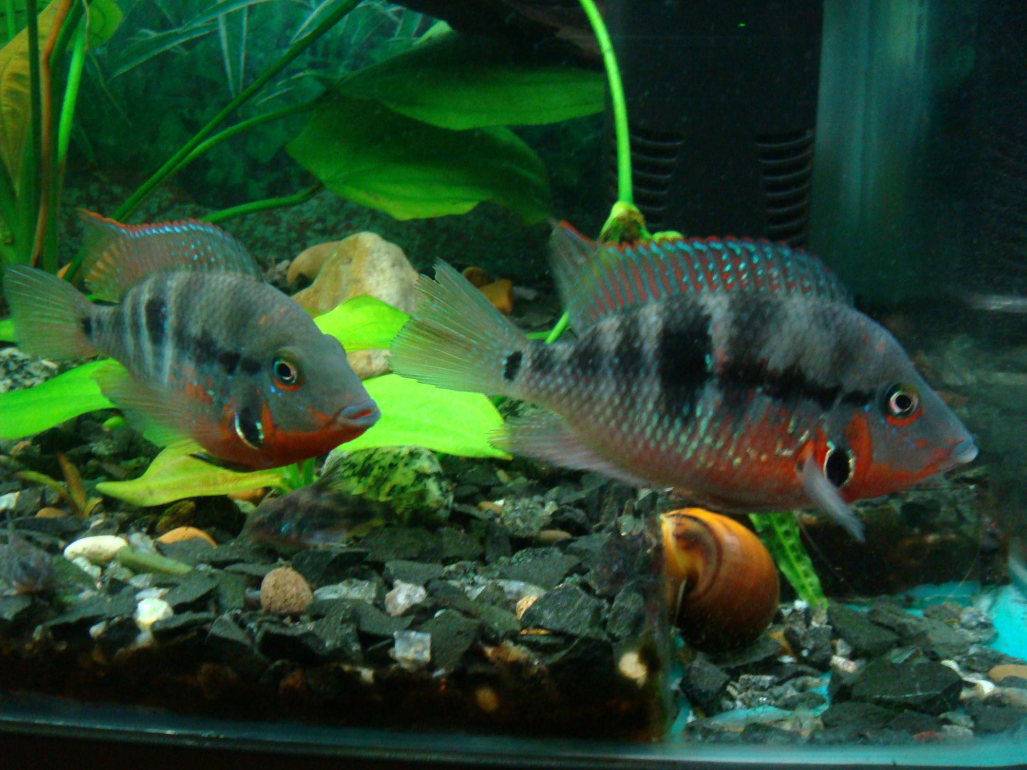 Продам пару Цихлозом Меек (красных). Возрост 9 месяцев, нерест один был, правда икру оприходовали через 2 дня. Самец 12см, самка 10см. Цена 30 грн за пару. Цель продажы- хочу хромисов разводить в общем аквариуме, а ето страшная война между видами.