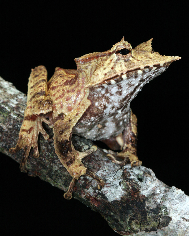 Лягушка принадлежит роду Hemiphractus семейства сумчатые квакши (Hemiphractidae).