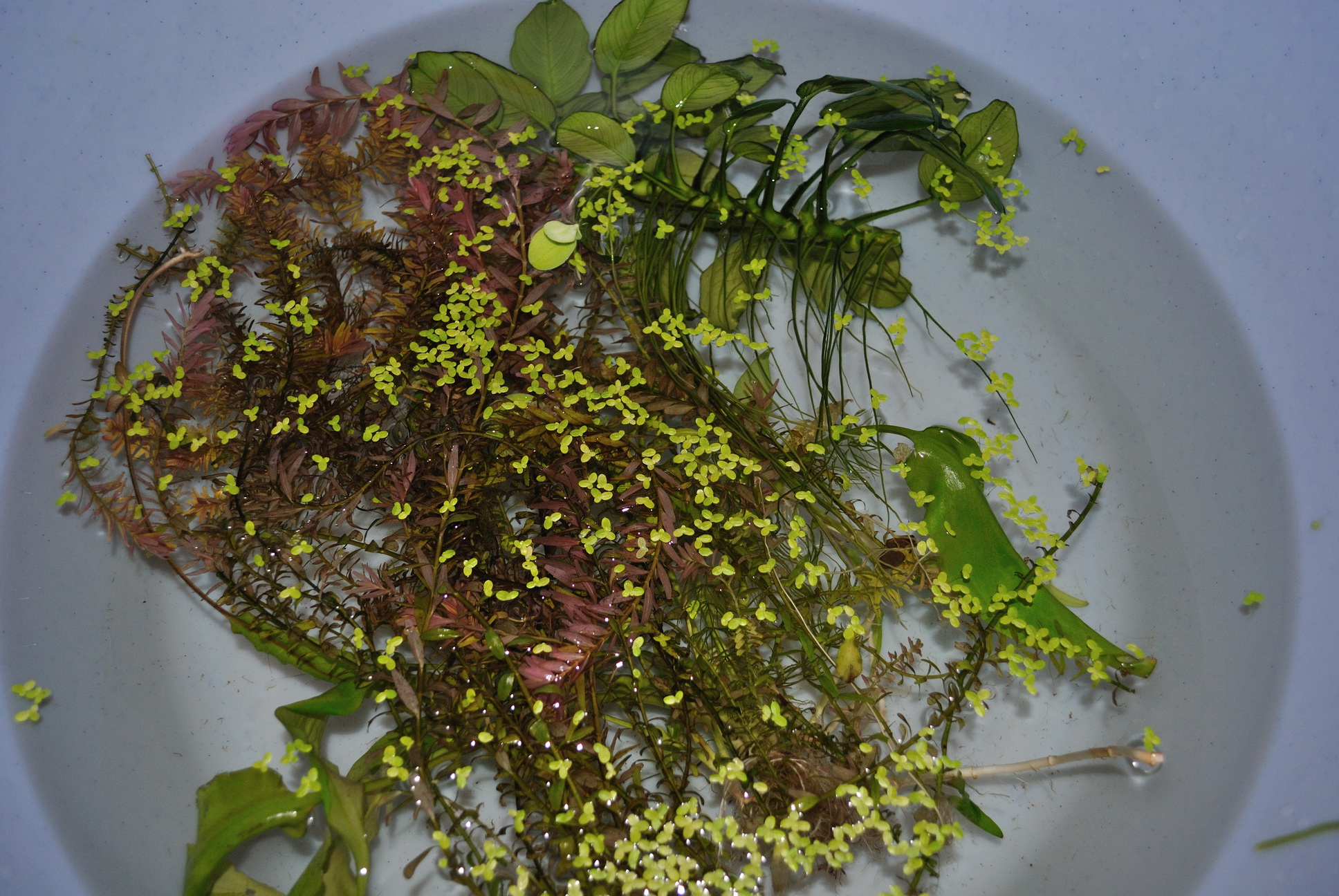 криптокорина понтиедреволистная, пара отростков другой криптокорины, ротала индийская, анубиас(немного оброс водорослями), ряска.