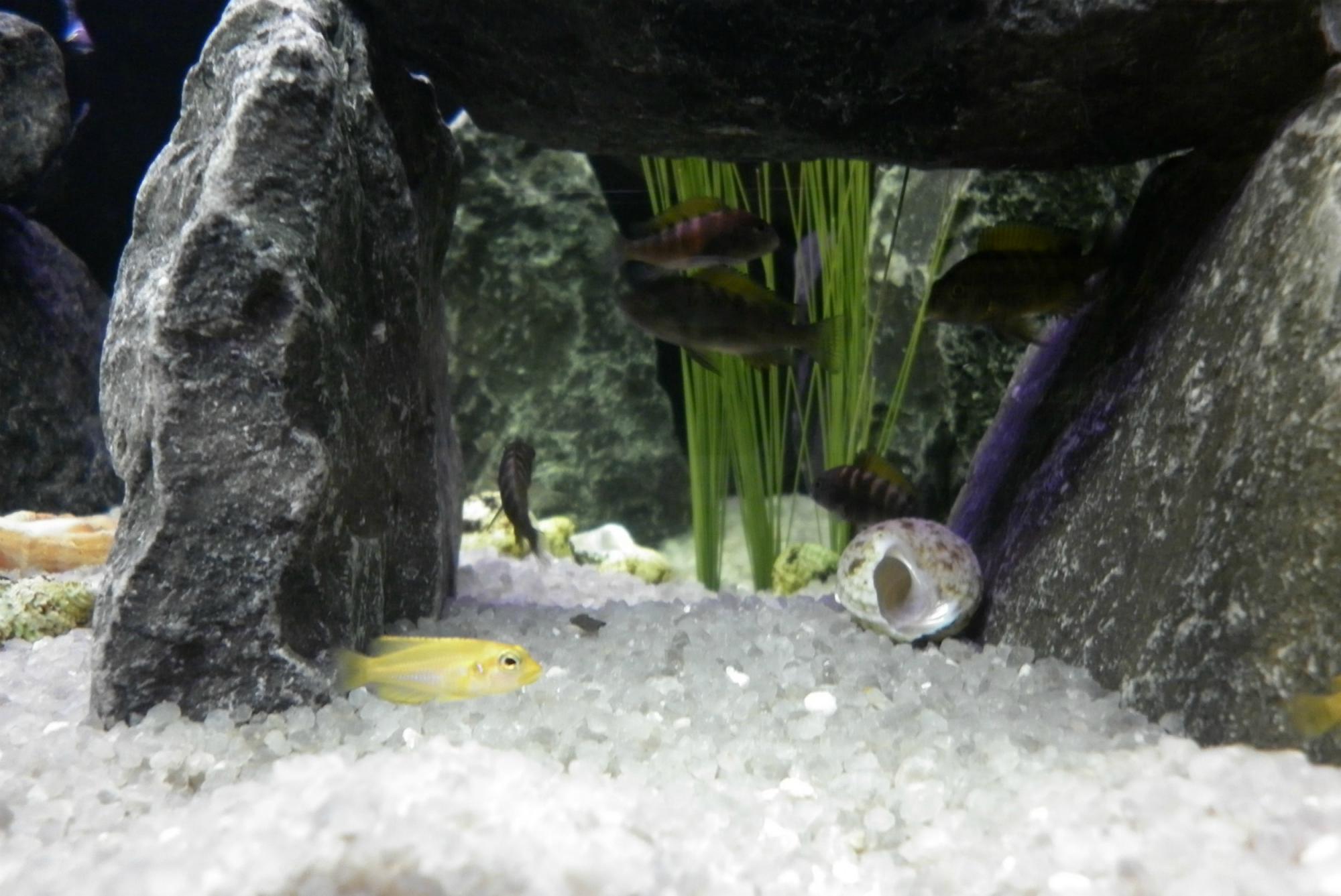 140 л. Обитатели : рыбки с оз. Танганьика ( Африка). Tropheus moorii 'Bemba', Lamprologus ocellatus 'gold'. Фильтр внешний Fluval 205, всё натуральное, кроме растений =)