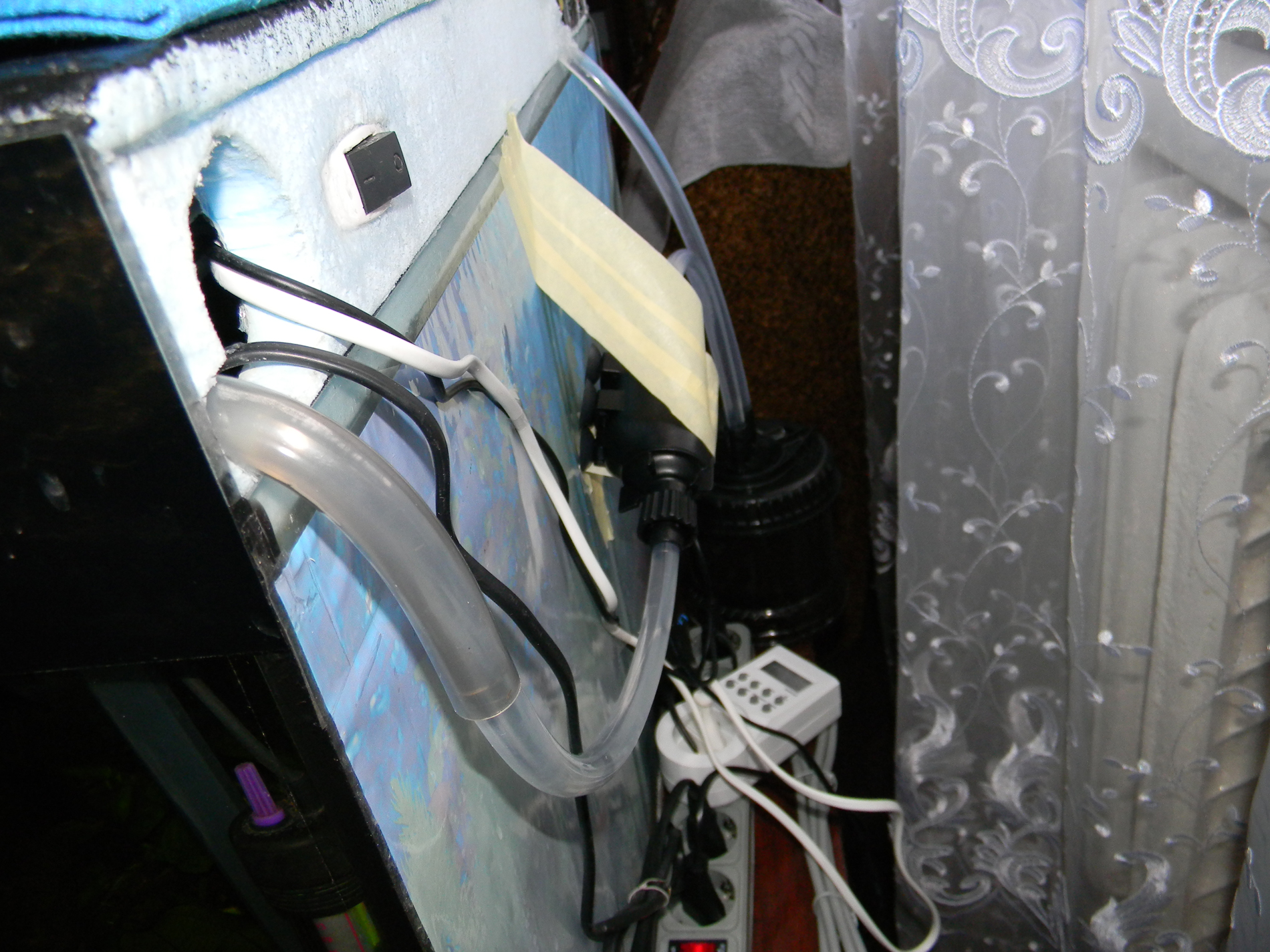 але шланги товсті і дуже жорстікі рішив поміняти на сіліконові вони більш гибкіші для кріплення і так далі.При зніманні помпи розлив трохи води на доріжку(перше зняття помпи незнав як правильно)взяв тряпку витерти доріжку дивлюсь криветка засохла як це можливо???із аквариума нереально вилізти фото прилагаю?