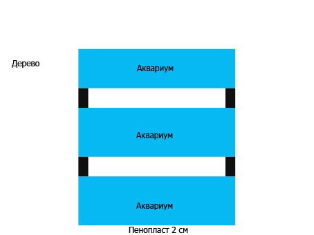 Хочу попробовать отказаться от металлических стеллажей. Идея простая. аквариум на пол (пенопласт 2 см), на торцах аквариума деревянные брусья примерной ширины (10 см) и на эти торцы аквариум. Примерно так. Слышал что ставят аквариумы на стекло. Кто что скажет ?
