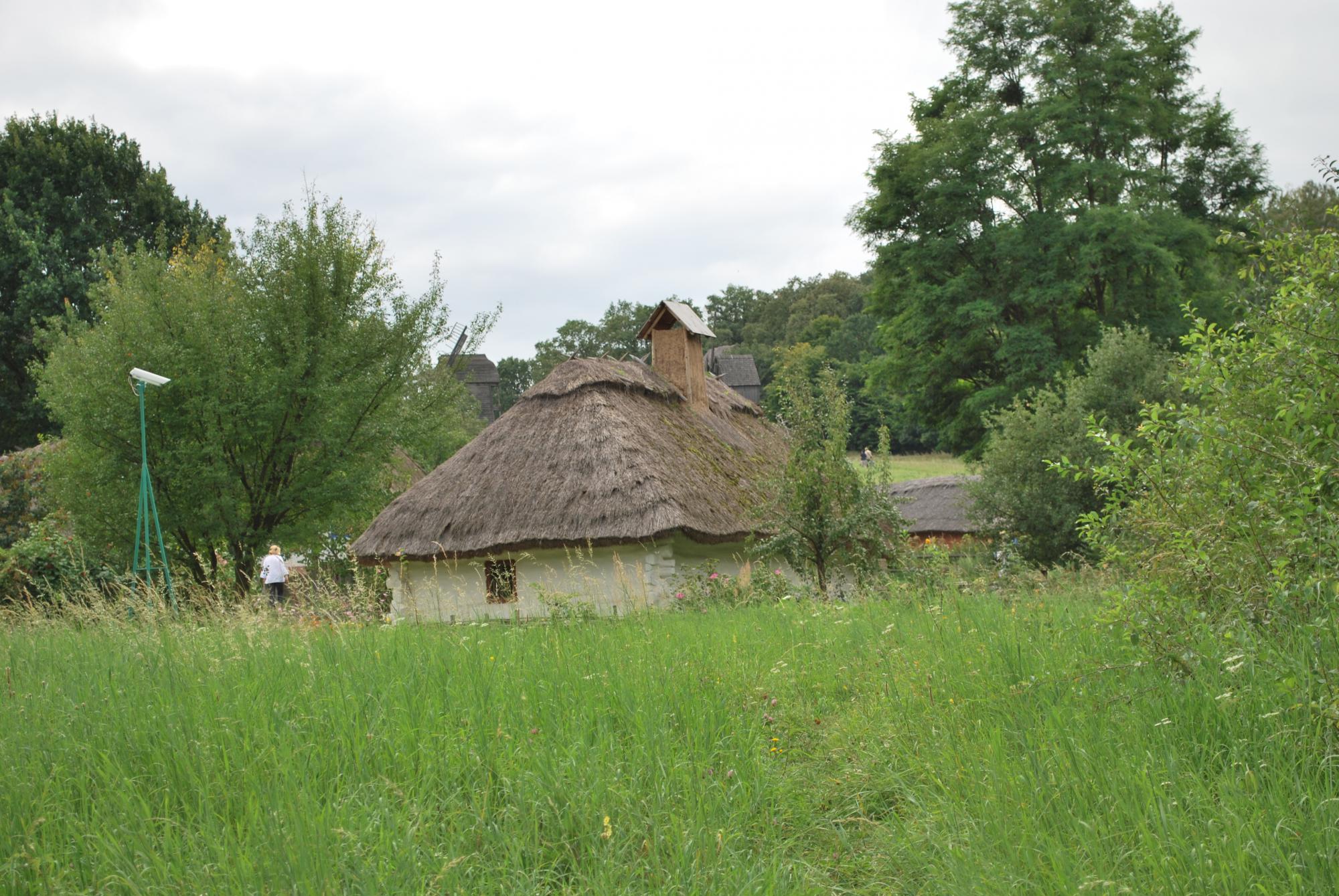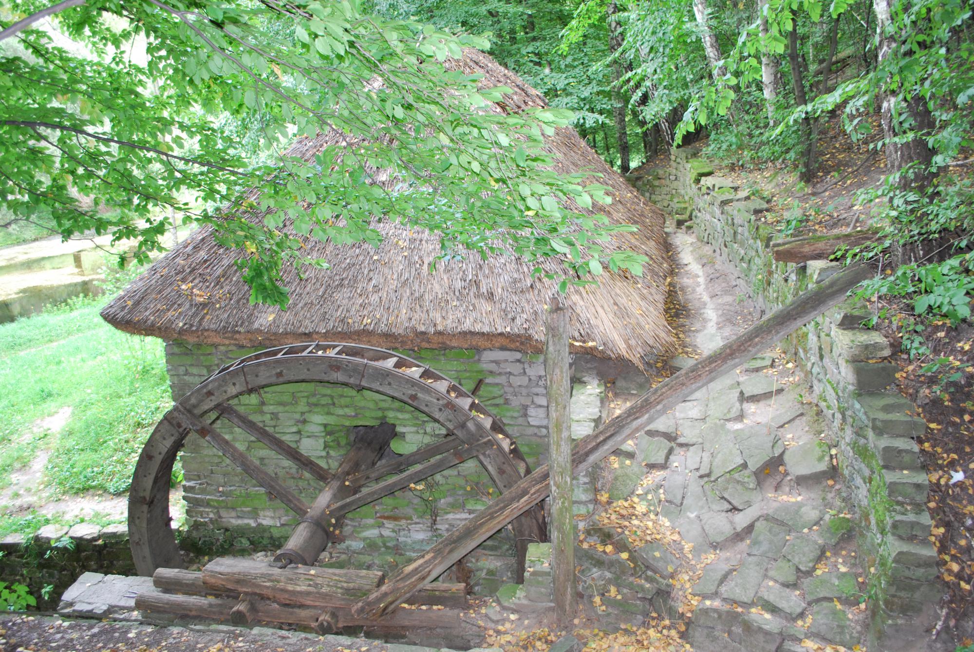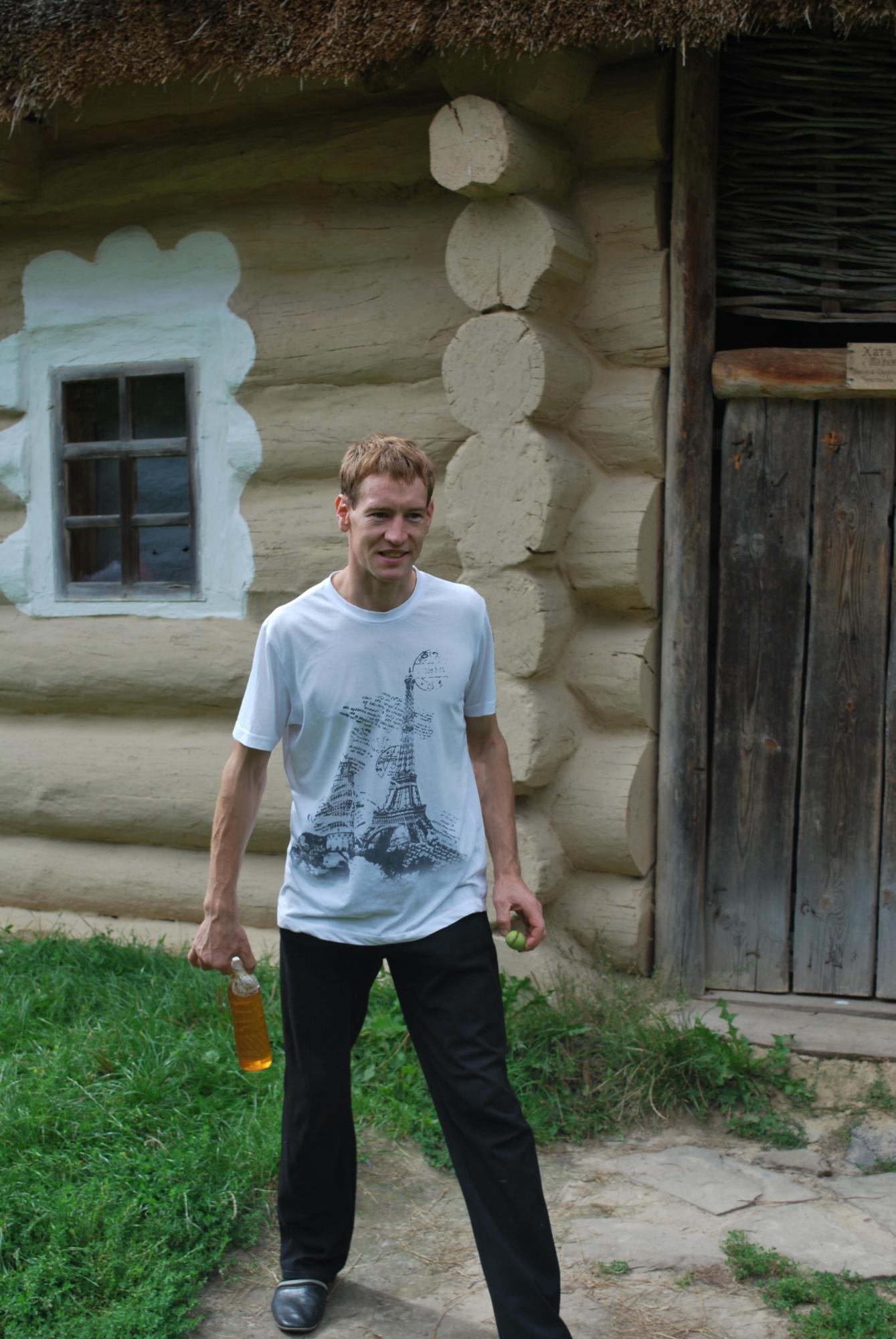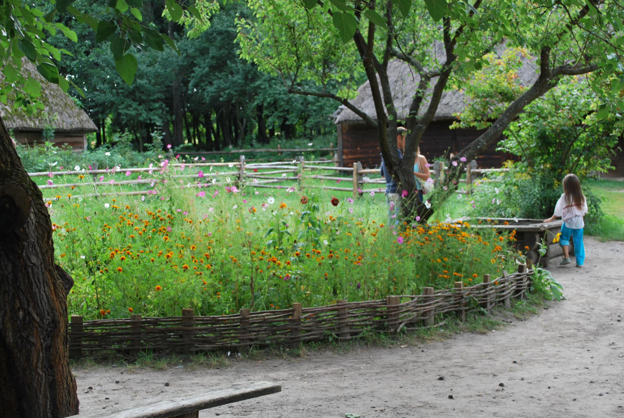 помимо все время действующей экспозиции народной архитектуры и быта нам повезло в одном из двориков Подолья наткнуться на мастера живописи. довольно пожилой человек в соломенном брыле слушал козацкий хор и рисовал новую картину. Он оказался очень приятным и я бы даже сказала лучезарным и добродушным старичком с сатирическим чувством юмора ( он так же является автором книжки сатирического юмора "Горохом по спині", в книжке очень много забавных карикатурок на русском языке)